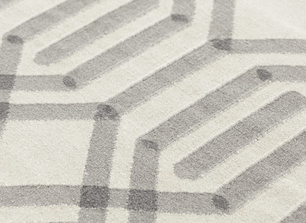 Połączenie neutralnych kolorów w Duna to hołd dla śródziemnomorskiego słońca, które skupia wszystkie miasta w regionie; przywołuje tradycyjne arabskie kilimy, a nawet pustynne wydmy. Najważniejszym elementem tego projektu jest technika zastosowana do uszczelnienia szwów: ręcznie szyte kolorowe obramowanie, które kontrastuje z chromatyczną prostotą reszty dywanu.