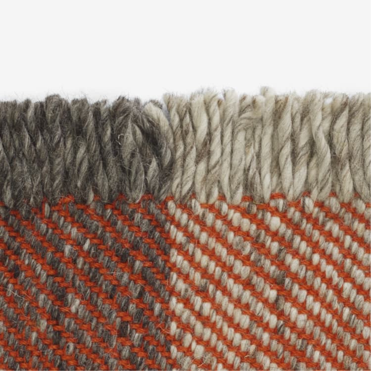 Fringe powstaje poprzez splatanie przędzy wełnianej o jaskrawych kolorach z dwoma różnymi odcieniami szarości - węglem drzewnym i jaśniejszym kolorem dymu. Rezultat jest na przemian odważny i niedopowiedziany, ponieważ podstawowe kolory łączą się w monochromatyczne bloki.