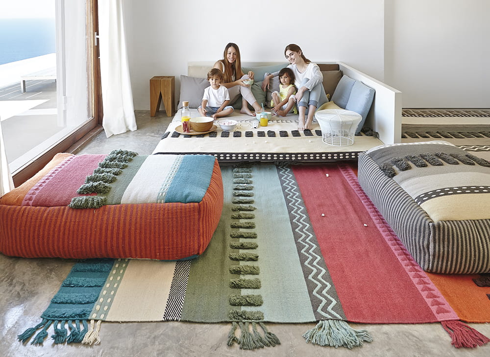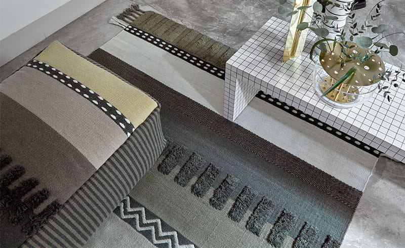 Kolekcja GLAOUI zaprojektowana przez Sandrę Figuerolę jest inspirowana tradycjami marokańskimi. To kolorowe podejście do projektowania, które emanuje ciepłem i wygodą, w którym wszystkie elementy łączą się wokół centralnego punktu: dywanu. GLAOUI obejmuje pufy i dywaniki wykonane techniką rzemieślniczą i tkane na krośnie z węzłami i haftami.