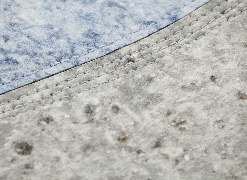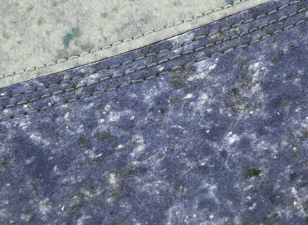 Ekologiczny filc. Skład włókien: Podstawa filcowa (75% wełna + 25% wiskoza) i haft wiskozowy.