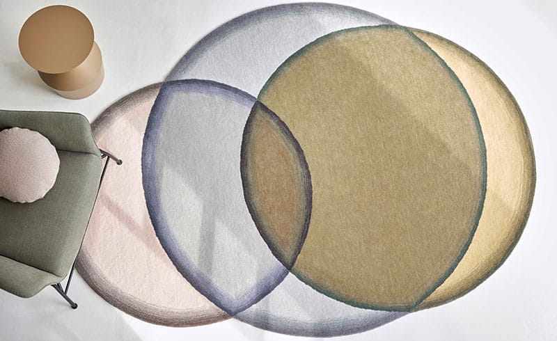 Charlotte Lancelot, stała współpracowniczka GAN, proponuje w swojej nowej kolekcji CRYSTAL grę percepcji obserwatora. Kolorowe koła wydają się nakładać na siebie w ruchu, tworząc trójwymiarową iluzję i robiąc miejsce dla różnych gradientów kolorów. W ten sposób wełna, gruba i wytrzymała, odtwarza przezroczystość szkła w serii dostępnej w trzech wariantach kolorystycznych: Neutralnym, Czerwonym i Niebieskiem.