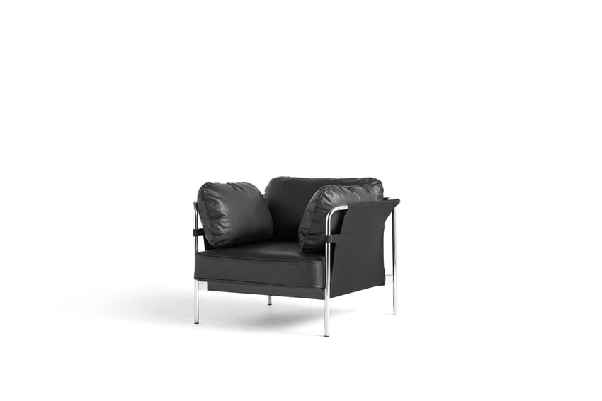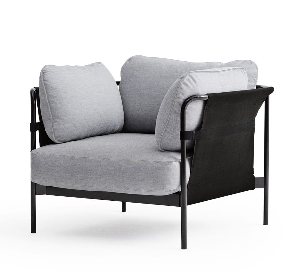 Pianka i w materacu i poduszkach. Lamówki pasują do tekstyliów / skóry. Materac jest nieodwracalny i posiada zintegrowany materiał antypoślizgowy na plecach oraz paski na rzepy mocujące poduszki do ramy. Tkanina zewnętrzna wykonana ze 100% płótna bawełnianego lub naturalnego 100% lnu. Czarny bawełniany pasek. Rama ze stali malowanej proszkowo na czarno lub chromowanej.