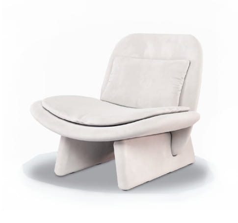Poduszki: siedzisko i poduszki tylne z pianki poliuretanowej o zróżnicowanej gęstości, zdejmowane pochyło. Tapicerka: tapicerka siedziska i tylnej małej poduszki w tym samym odcieniu skóry co rama. Różne odcienie dostępne za indywidualną wyceną.