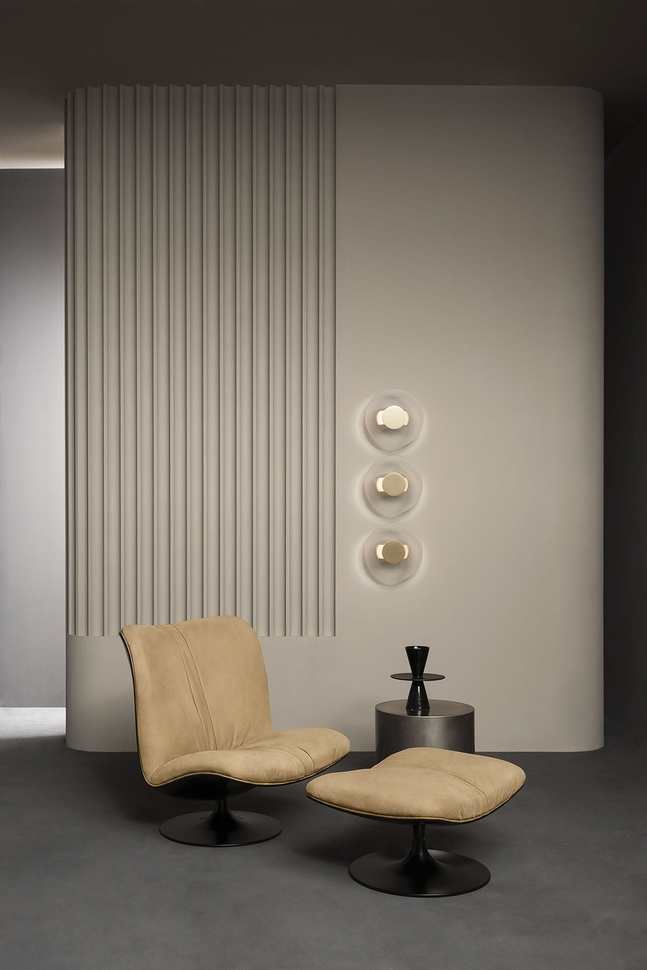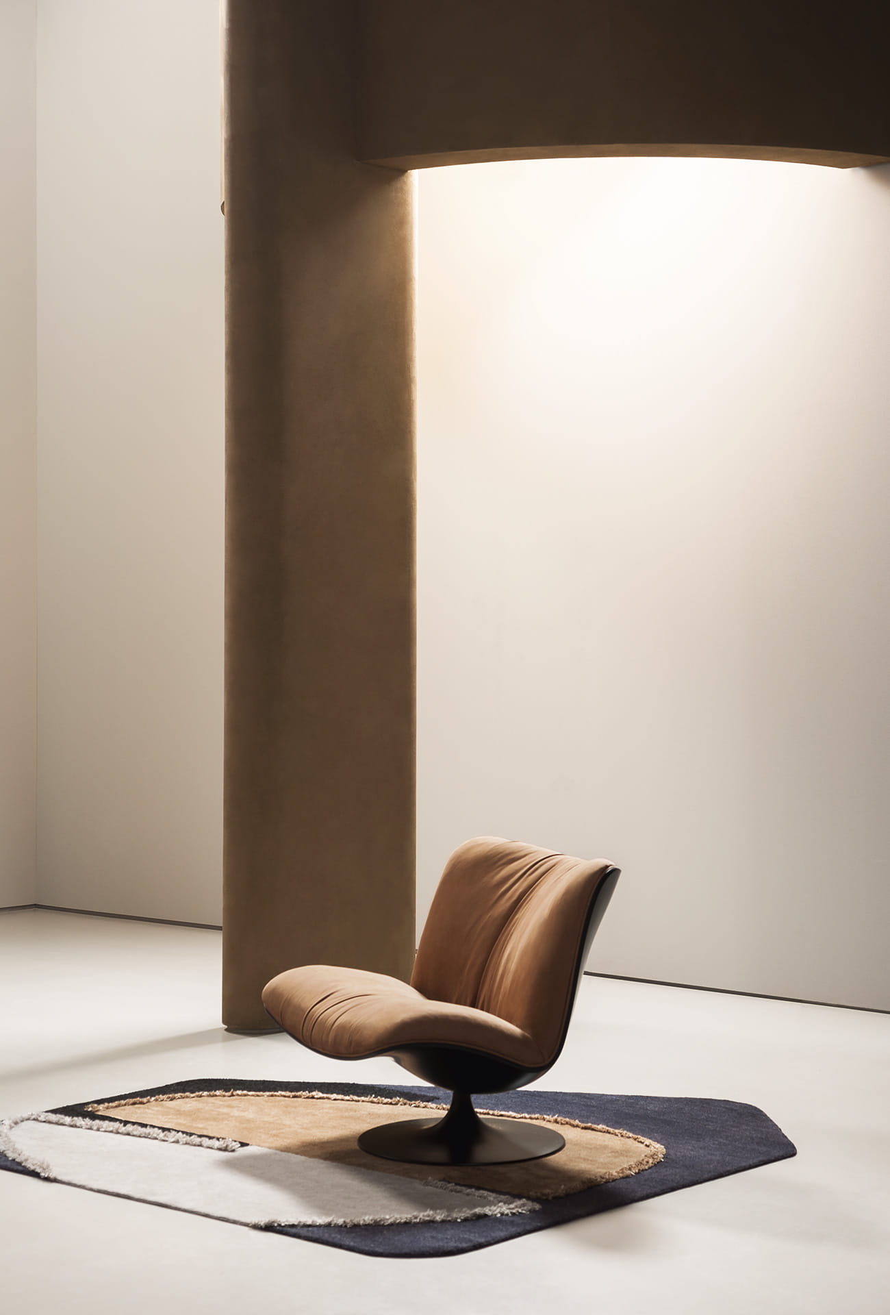 Skórzany fotel zaprojektowany przez Draga&Aurel to proste krzesło z szerokim i wygodnym siedziskiem, ultralekką i opływową obudową w stylu vintage oraz falistymi i hojnymi formami. Są to cechy wyróżniające Marilyn. Jego płynny profil przypomina otulające i wygodne gniazdo, w którym można się wtulić, ciepły uścisk, w którym można usiąść i zrelaksować się. Obrotowe siedzisko delikatnie kołysze, gwarantując jednocześnie swobodę ruchów. Atrakcyjny, a jednocześnie wyrafinowany, młody i oryginalny, dzięki skórzanej tapicerce fotel nie tylko dodaje przestrzeni charakteru, ale także tekstury i głębi.