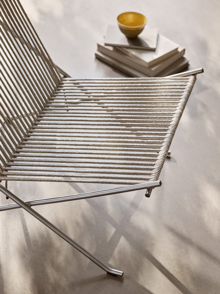PK4™ to nowoczesny, relaksujący fotel wypoczynkowy zaprojektowany przez Poula Kjærholma w 1952 roku. Promieniuje charakterystyczną elegancją projektanta poprzez lekką, minimalistyczną ekspresję ze stali i tkaniny i doskonale egzemplifikuje wizjonerskie podejście Kjærholma, w którym sztuka i projektowanie przecinają się.