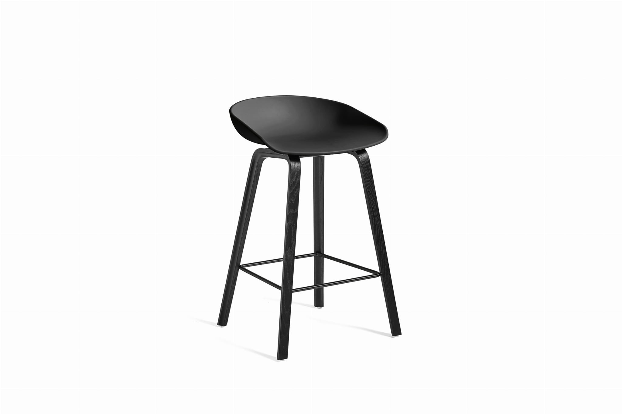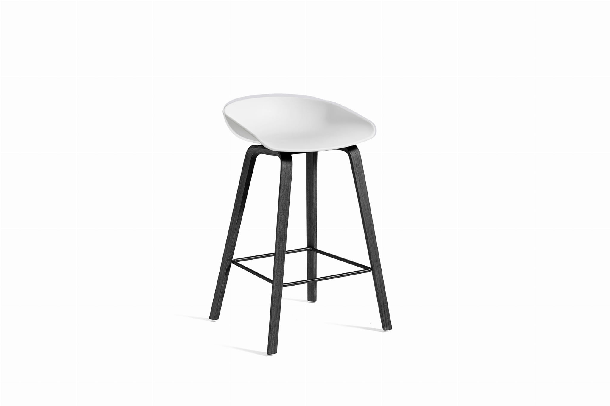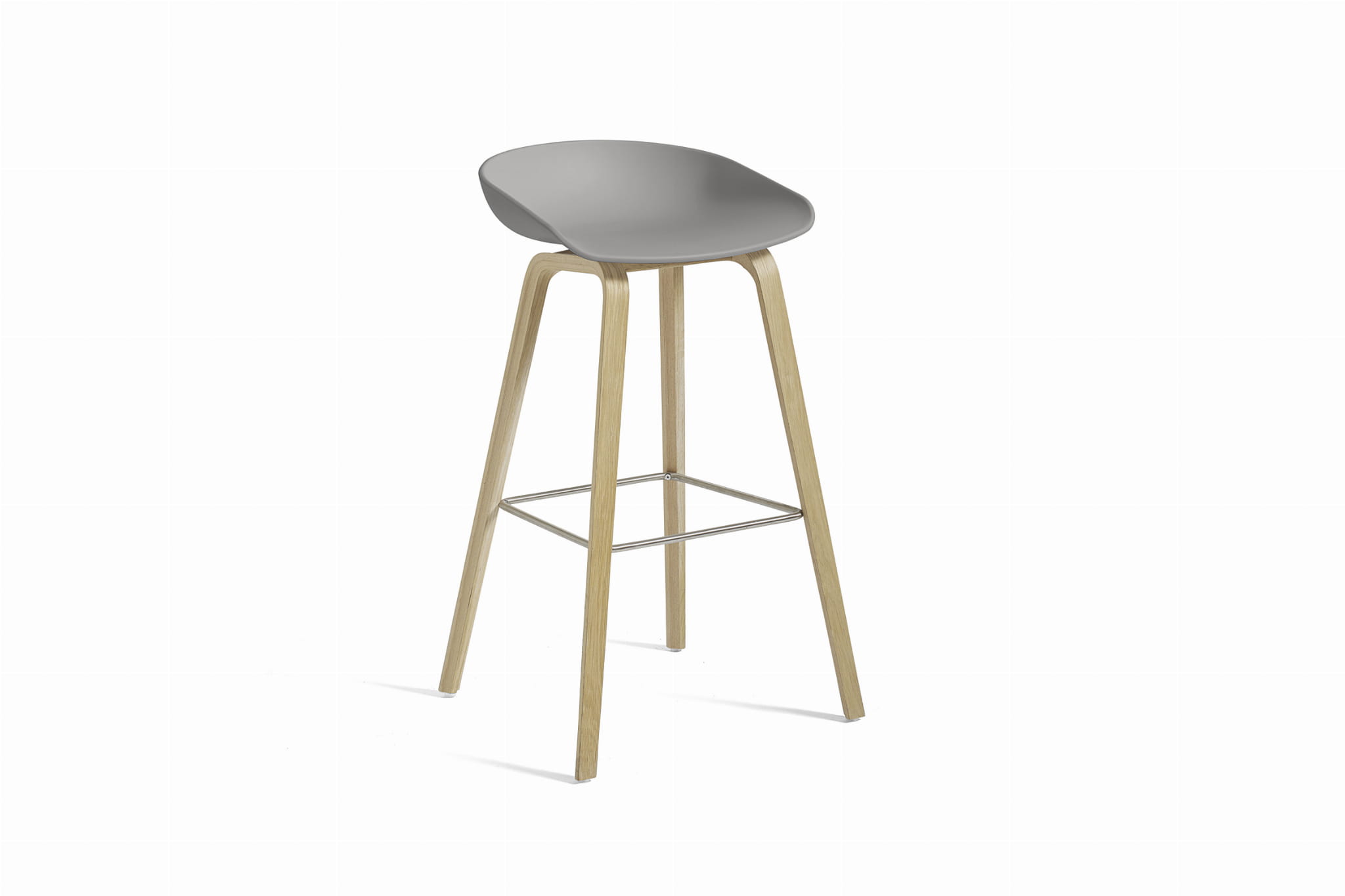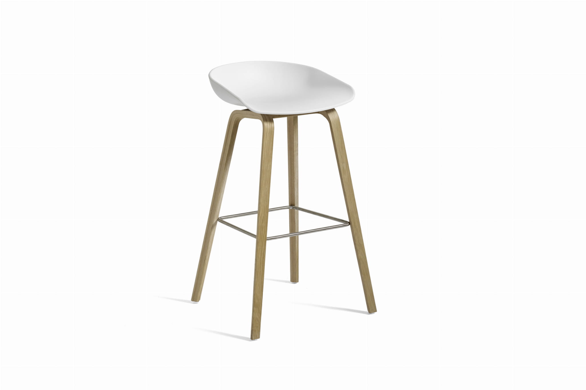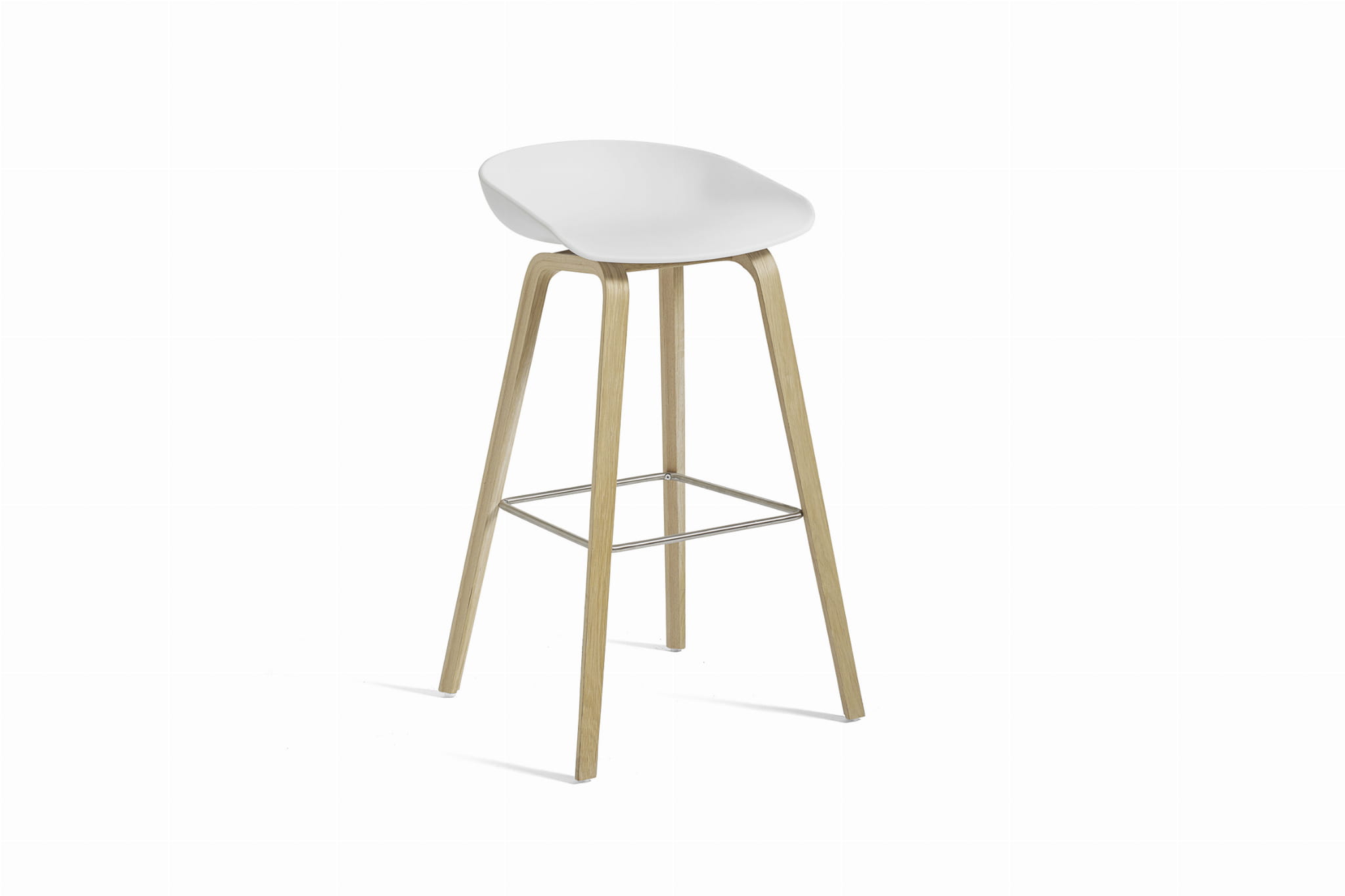 Stołek barowy About A Stool AAS 32 ma taką samą zdolność do transformacji, jak inne projekty z tej serii, od minimalistycznego stołka z tworzywa sztucznego do pełniejszej wersji tapicerowanej. Z zakrzywionym oparciem i długimi, eleganckimi drewnianymi nogami, cieszy się prostą, ale silną wizualną obecnością, która sprawia, że jest idealny jako stołek barowy w środowisku publicznym, jak również podczas nieformalnych spotkań i posiłków. Dostępny w dwóch wysokościach, w różnych wykończeniach.