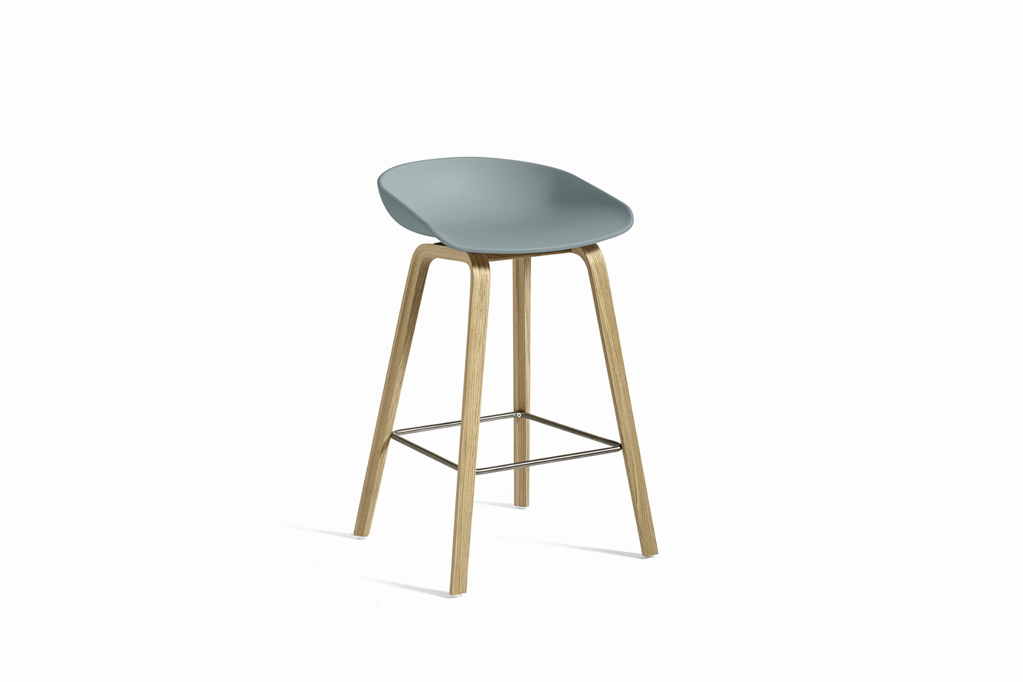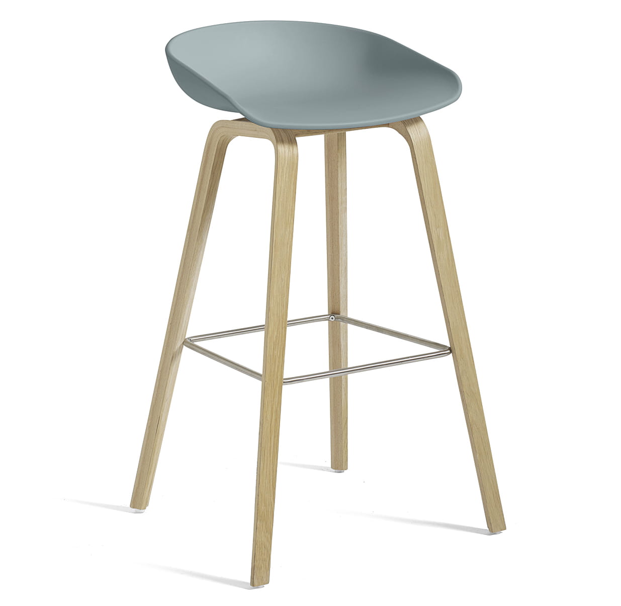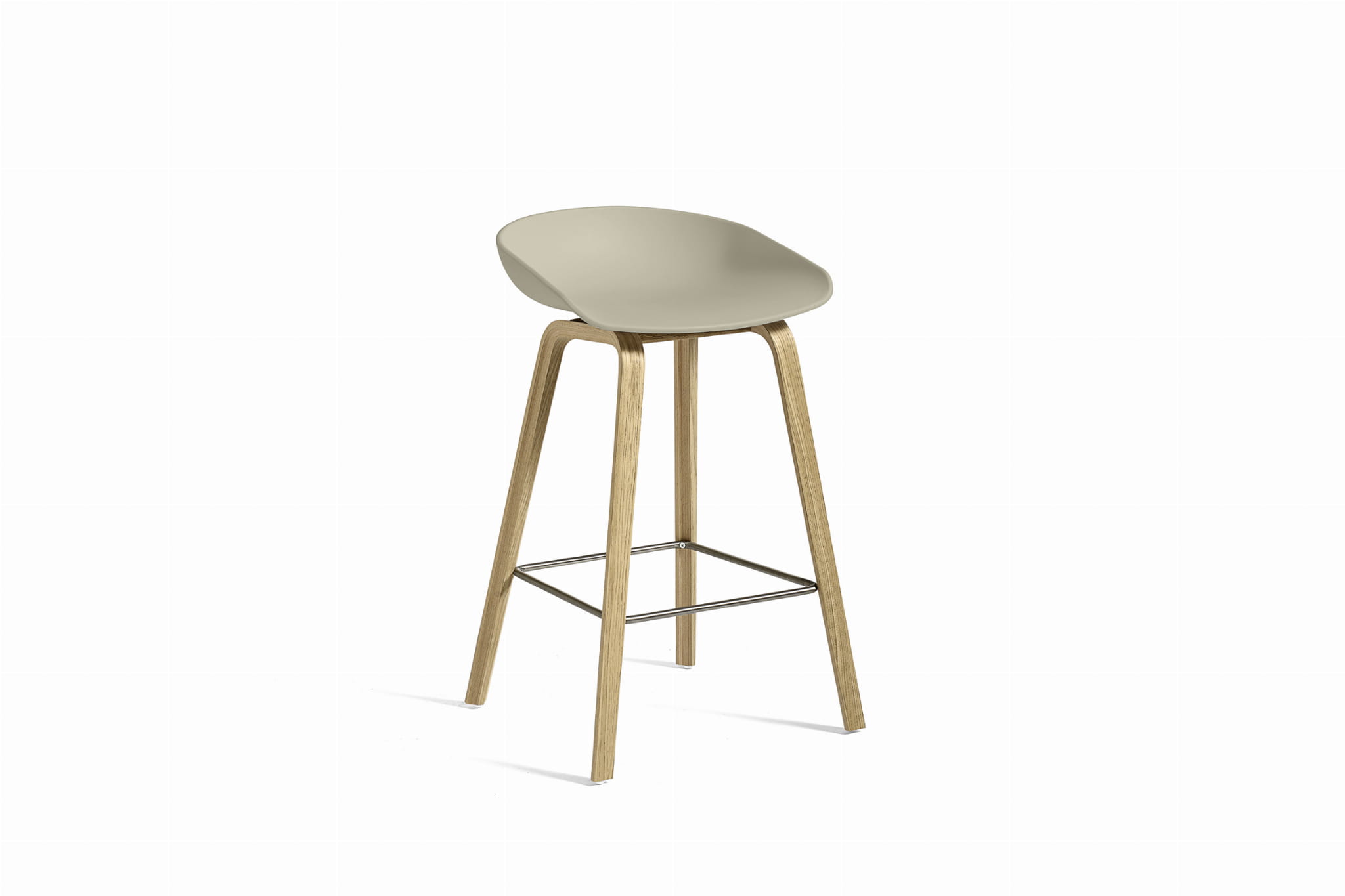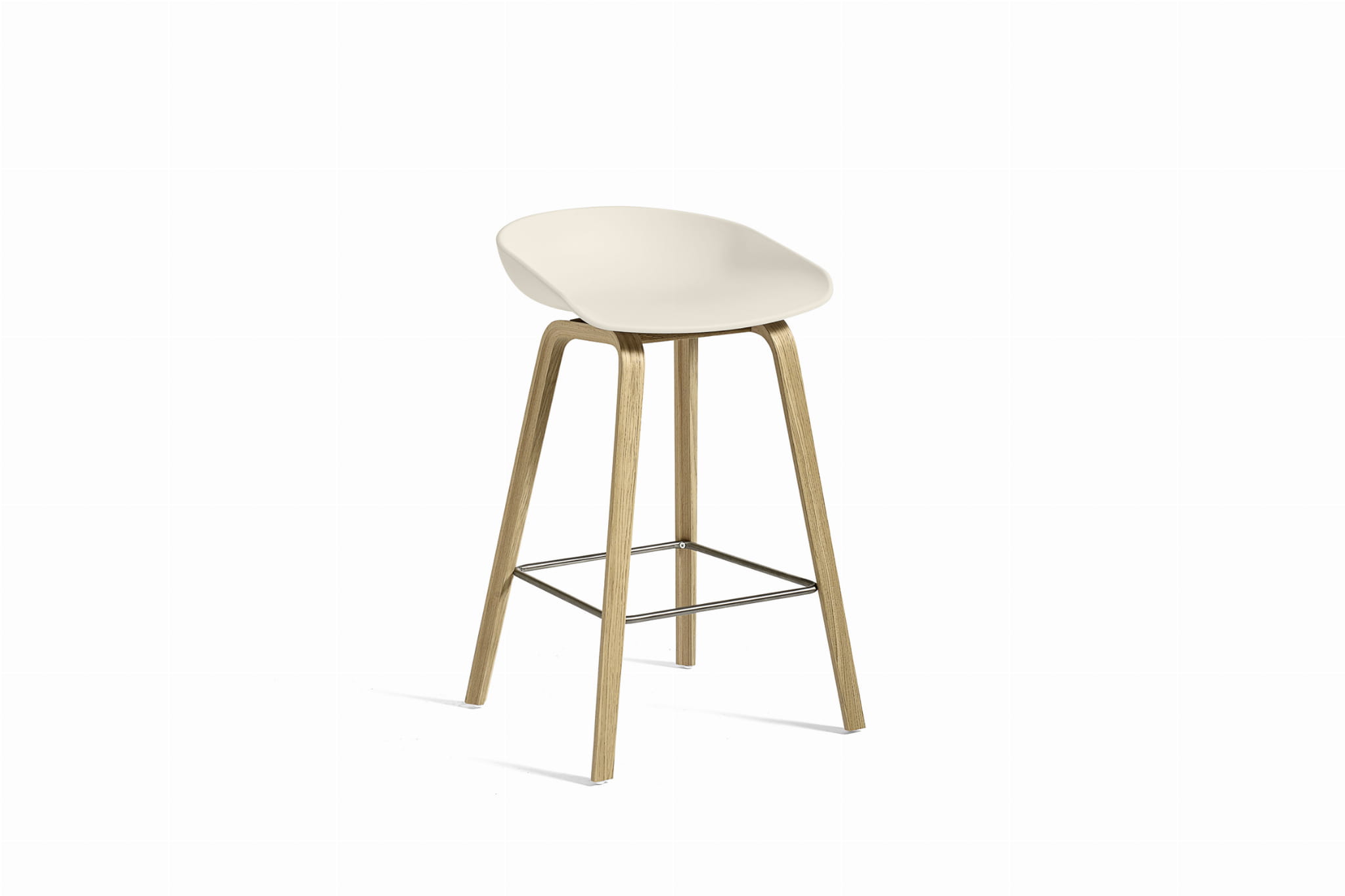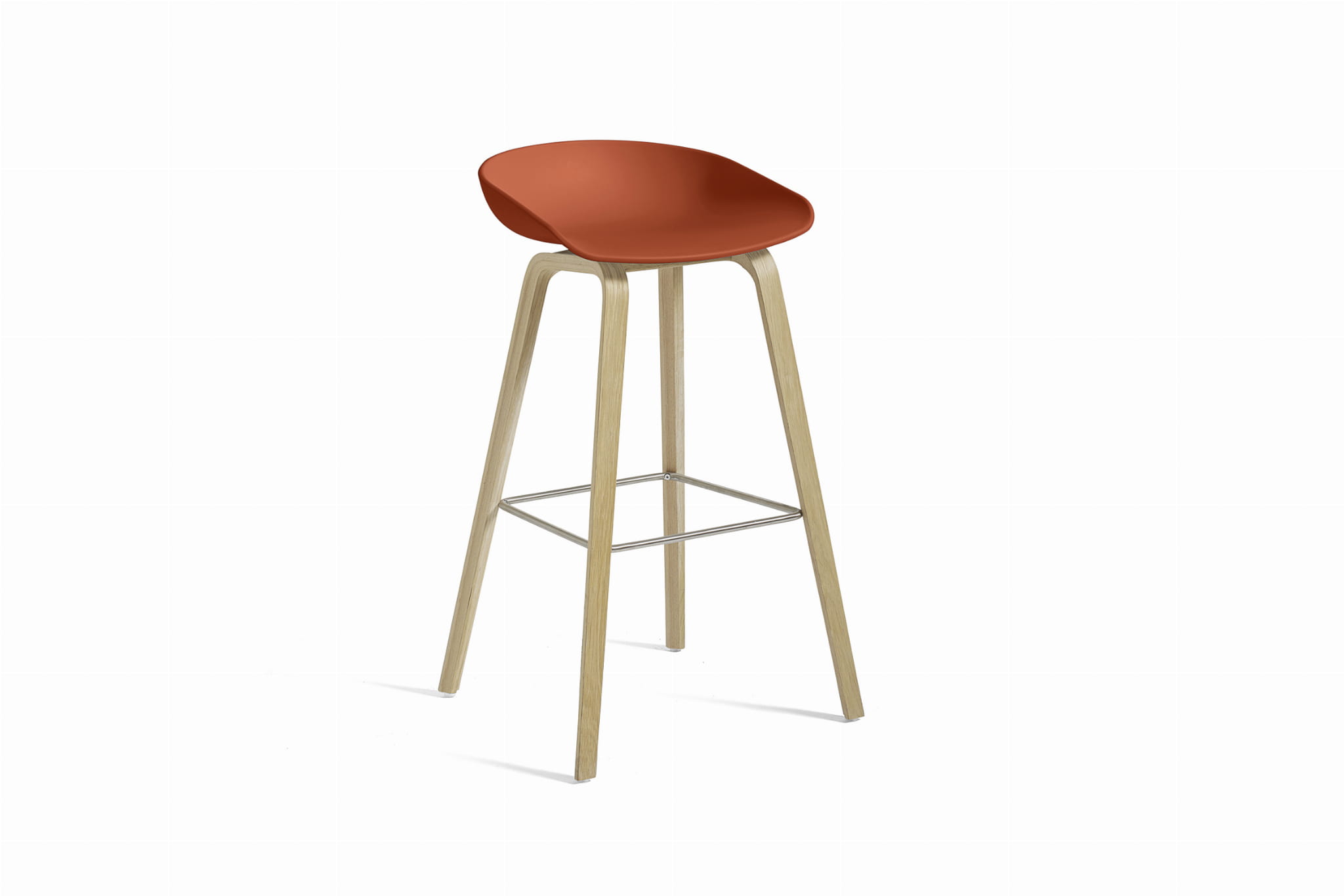Stołek barowy About A Stool AAS 32 ma taką samą zdolność do transformacji, jak inne projekty z tej serii, od minimalistycznego stołka z tworzywa sztucznego do pełniejszej wersji tapicerowanej. Z zakrzywionym oparciem i długimi, eleganckimi drewnianymi nogami, cieszy się prostą, ale silną wizualną obecnością, która sprawia, że jest idealny jako stołek barowy w środowisku publicznym, jak również podczas nieformalnych spotkań i posiłków. Dostępny w dwóch wysokościach, w różnych wykończeniach.