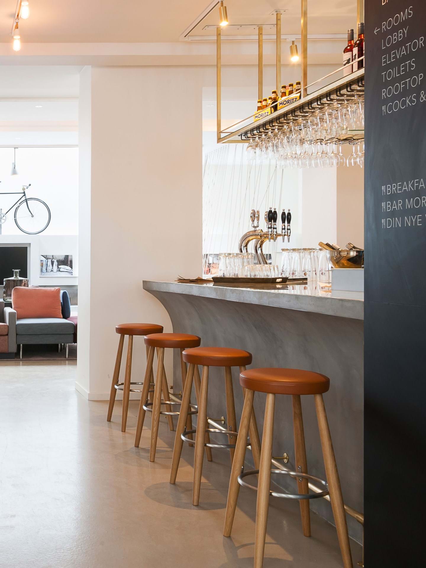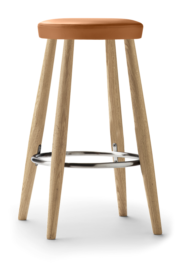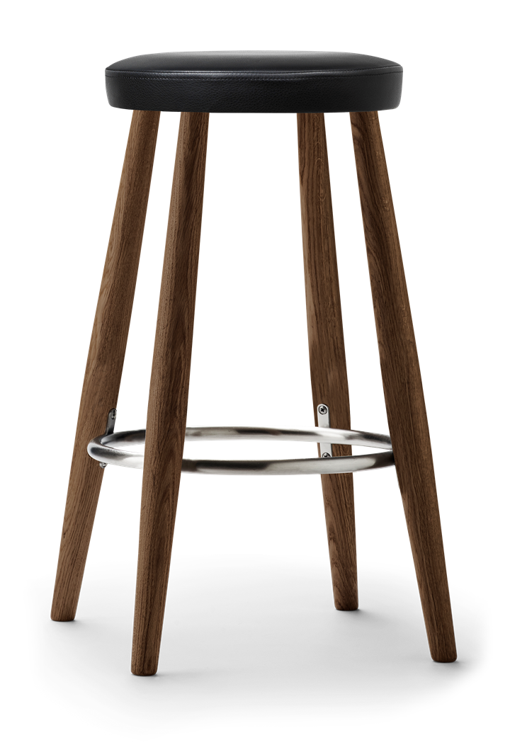 Stołek barowy CH56 dzięki swojemu czystemu wyglądowi tworzy przyjazną atmosferę w kuchni, barze lub w restauracji. Stołek jest solidny i wytrzymały dzięki 4 lekko skośnym nogom. Pierścień ze stali nierdzewnej, który łączy nogi, zapewnia stabilność i miejsce do oparcia stóp. Stabilna konstrukcja stołka jest dobrze przemyślana pod względem stabilności i typowa dla Hansa J. Wegnera, posiada nogi, które są najgrubsze w miejscu łączenia z pierścieniem zwężającym się w kierunku podłogi i siedziska.