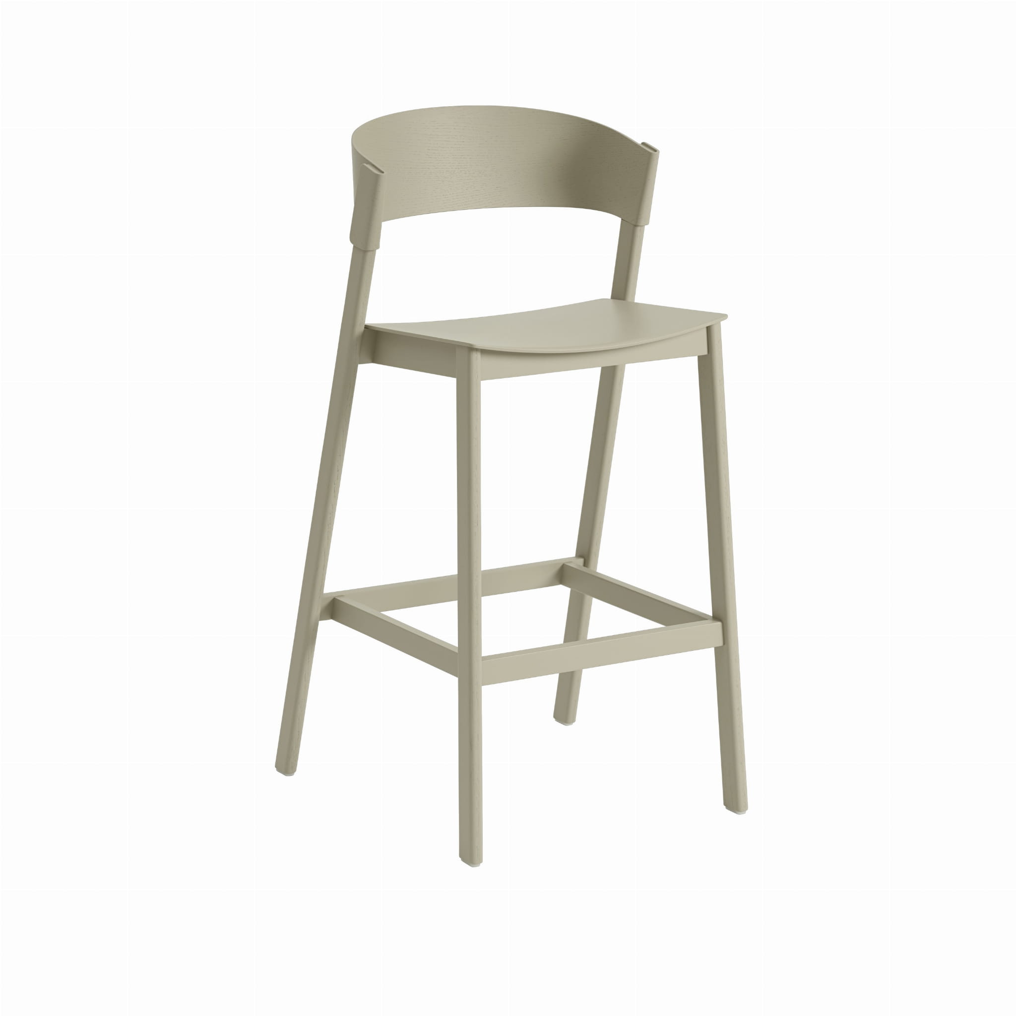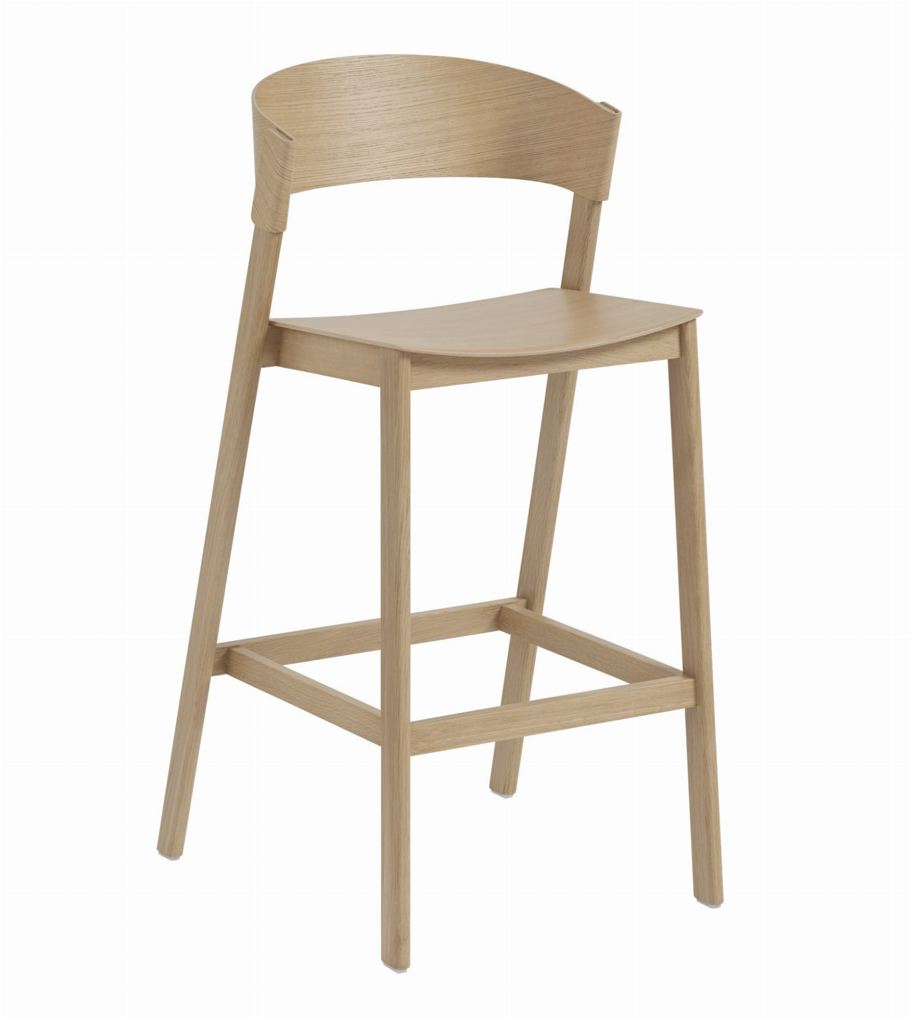 Cover Counter Stool wykonany jest w całości z drewna. Drewno jest składane na nogi i oparcie krzesła. Ta techniczna innowacja polegająca na warstwowym ułożeniu drewna spaja krzesło w całość.
