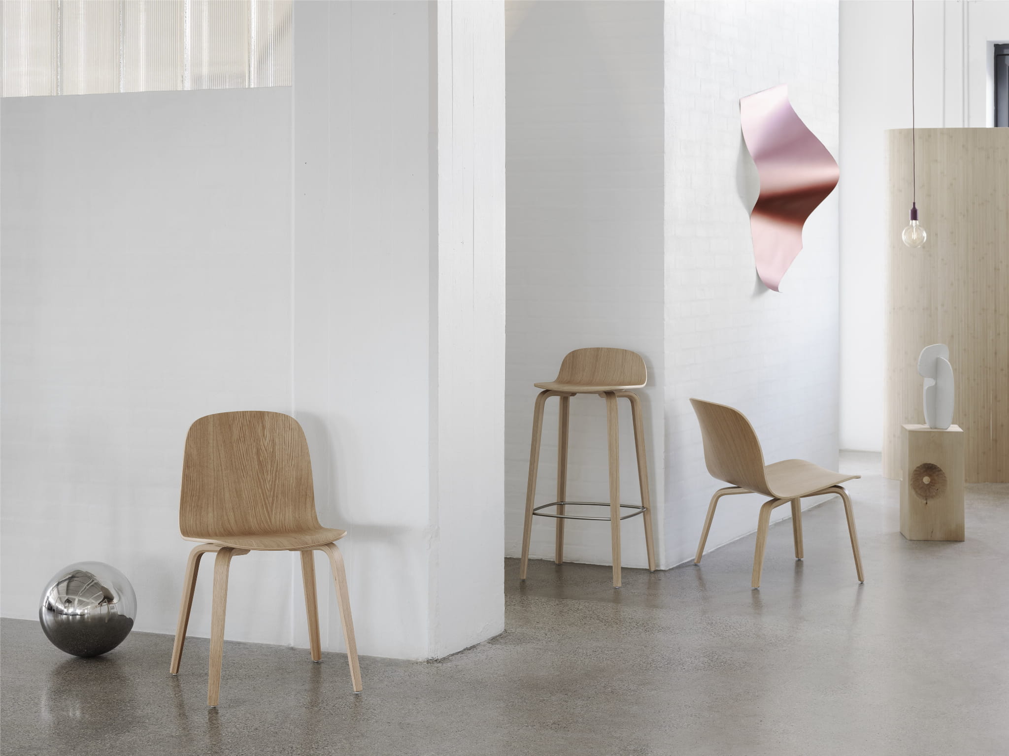 Wnosząc lekkość do projektu, drewniana podstawa krzesła Visu łączy ergonomiczne i funkcjonalne wyrażenia z prostą sylwetką. Skorupa jest wykonana z formowanego forniru, a drewniane nogi zapewniają elegancką, ale solidną podstawę.
