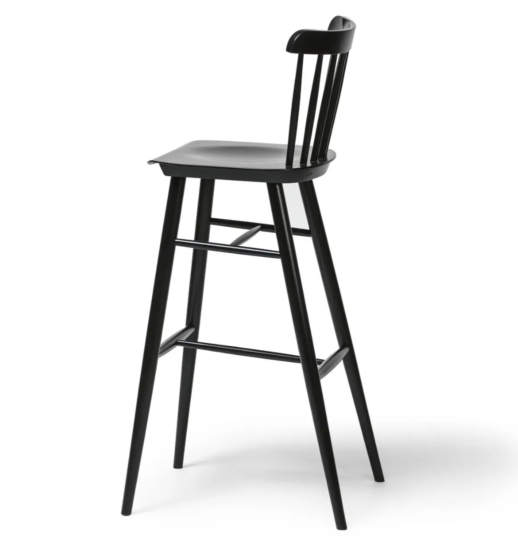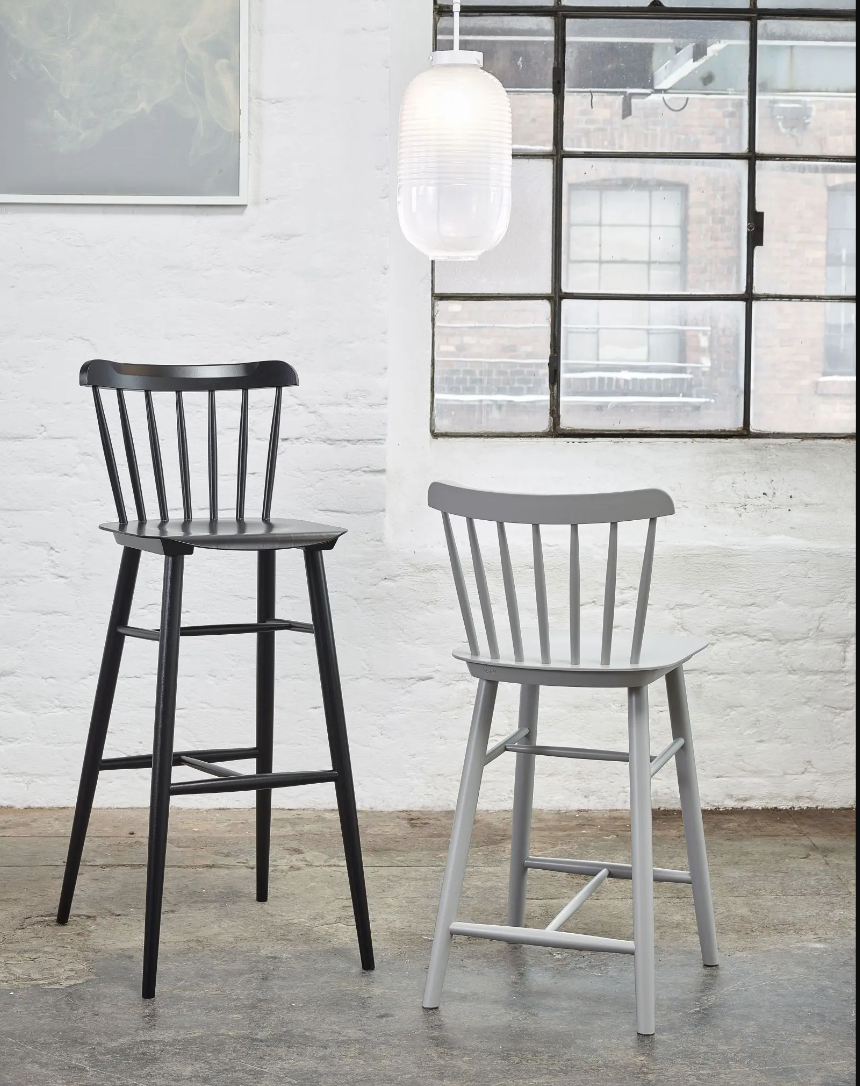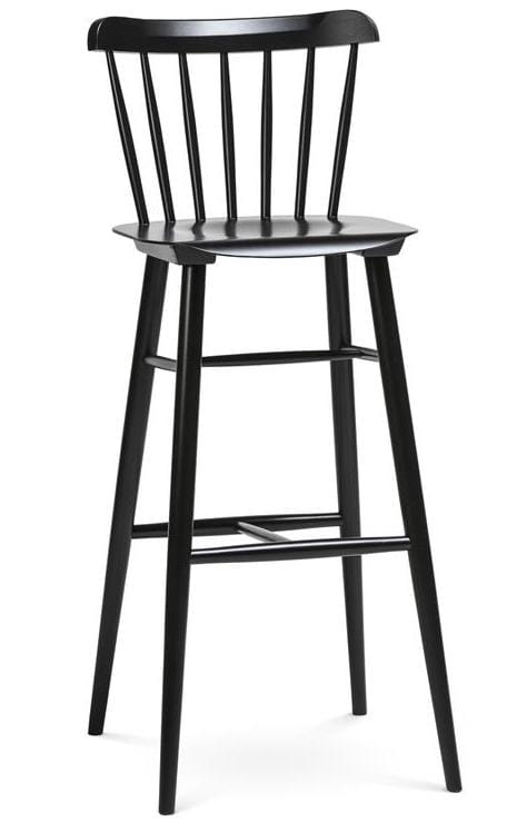 Krzesło barowe jest uzupełnieniem oferty krzeseł o tej samej nazwie. Klasyczna podstawa i zaokrąglone opacie wykonane z siedmiu ręcznie szlifowanych prętów drewnianych, to cechy charakterystyczne tego modelu. Oferujemy go w dwóch wysokościach.