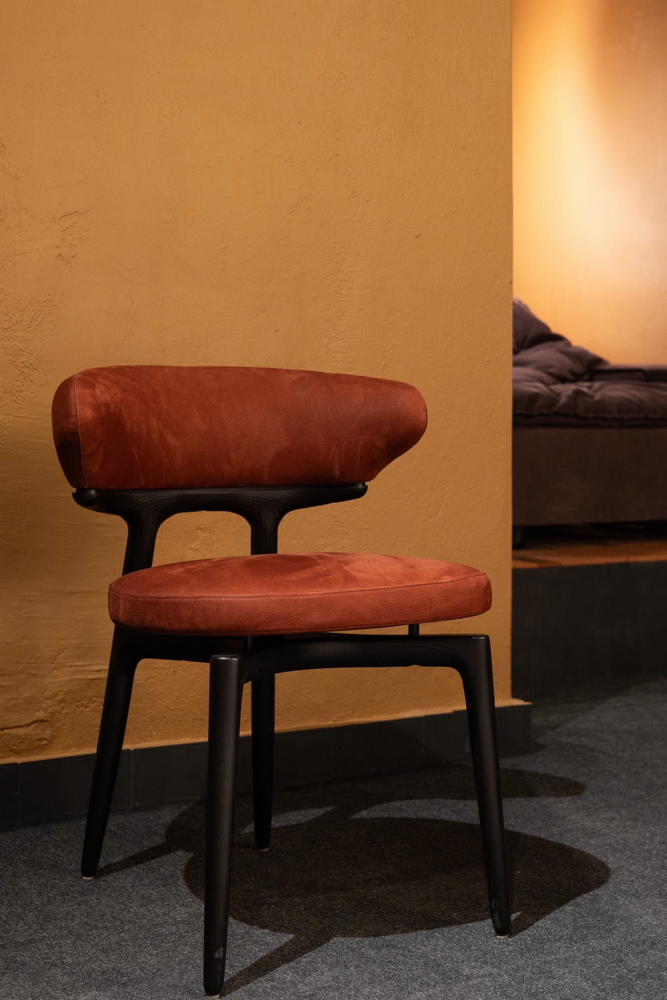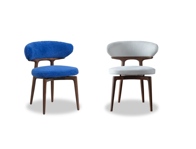 Idealne uzupełnienie każdego stołu - nie tylko w jadalni - krzesło Clotilde Roberto Lazzeroni wyróżnia się lekkim i minimalistycznym wyglądem, który przerabia klasyczny design krzeseł z lat 60. na odważniejszy, bardziej wyrazisty wizerunek. Krzesło Clotilde ma ramę dostępną w dwóch różnych wykończeniach, z jesionu ebonizowanego lub orzecha włoskiego, która wspiera tapicerowane siedzisko i poduszkę oparcia. Dzięki sprytnemu projektowi oparcie zostało przedłużone tak, aby obejmowało gościa i zapewniało funkcjonalne wsparcie dla ramion, bez potrzeby stosowania podłokietników. Krzesło staje się zatem nowym klasykiem, doskonałą ikoną samą w sobie lub w połączeniu ze stołami Baxter.