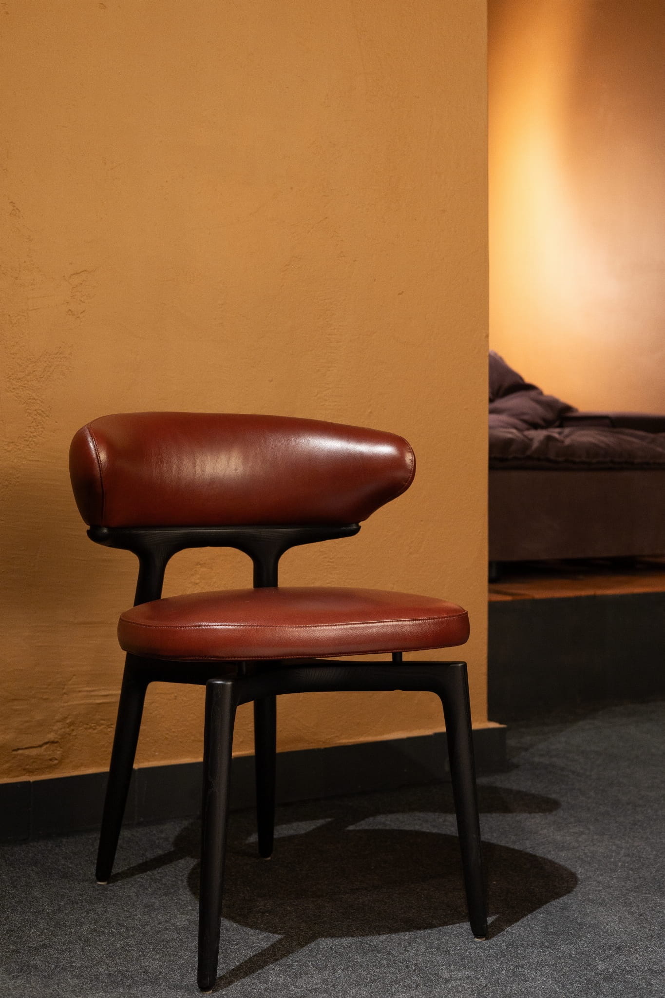 Idealne uzupełnienie każdego stołu - nie tylko w jadalni - krzesło Clotilde Roberto Lazzeroni wyróżnia się lekkim i minimalistycznym wyglądem, który przerabia klasyczny design krzeseł z lat 60. na odważniejszy, bardziej wyrazisty wizerunek. Krzesło Clotilde ma ramę dostępną w dwóch różnych wykończeniach, z jesionu ebonizowanego lub orzecha włoskiego, która wspiera tapicerowane siedzisko i poduszkę oparcia. Dzięki sprytnemu projektowi oparcie zostało przedłużone tak, aby obejmowało gościa i zapewniało funkcjonalne wsparcie dla ramion, bez potrzeby stosowania podłokietników. Krzesło staje się zatem nowym klasykiem, doskonałą ikoną samą w sobie lub w połączeniu ze stołami Baxter.