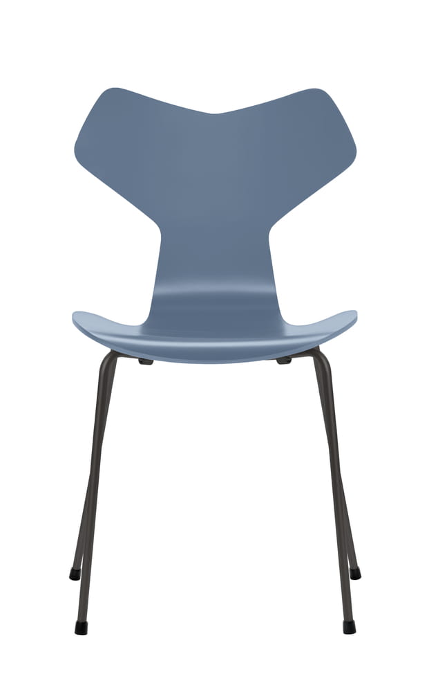 Krzesło Grand Prix ze stalowymi nogami jest odzwierciedleniem większej kolekcji krzeseł Arne Jacobsena wykonanych ze sklejki, ustawianych jedno na drugim, ze stalowymi, rurowymi nogami.