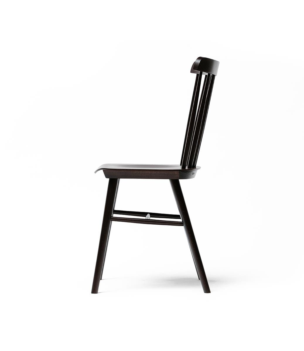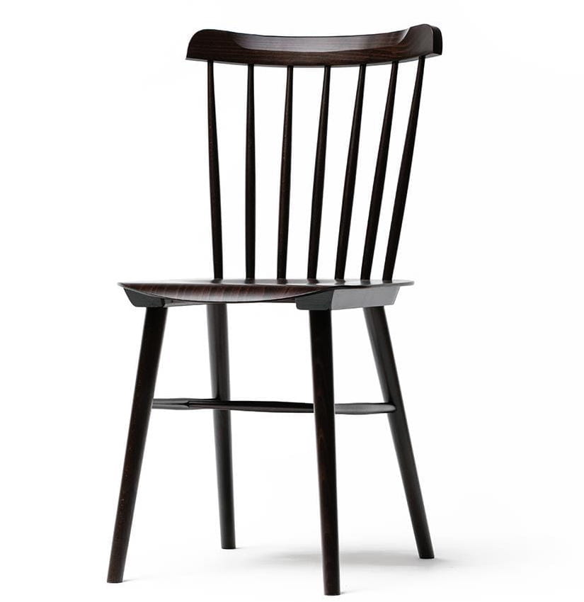 Proste krzesło w stylu retro, które dzięki bogatej ofercie barwnego wykończenia może stać się ciekawym dopełnieniem każdego wnętrza. Tylną część tworzy siedem ręcznie szlifowanych, drewnianych szczebli połączonych z wyginanym oparciem. Krzesło stanowi doskonałą kombinację ze stołem o tej samej nazwie.