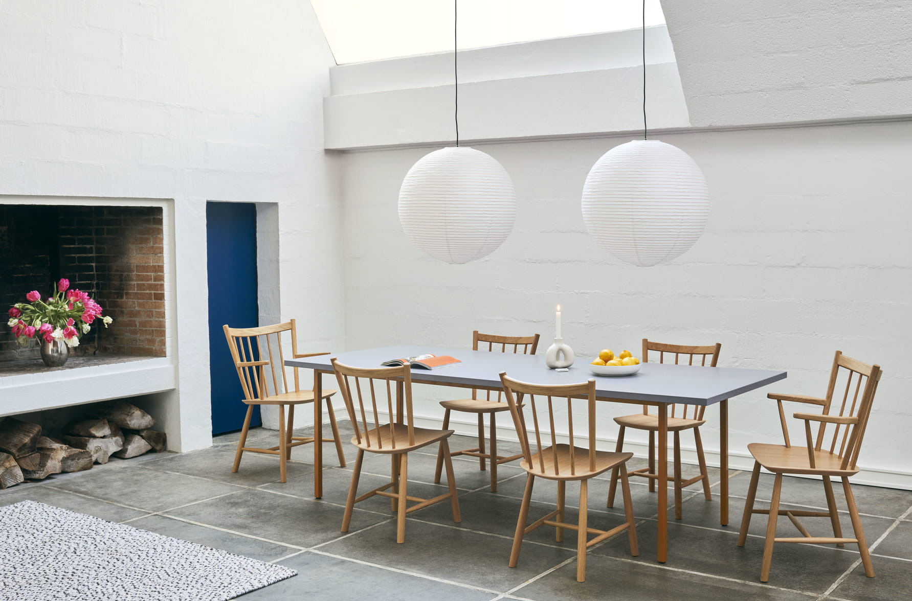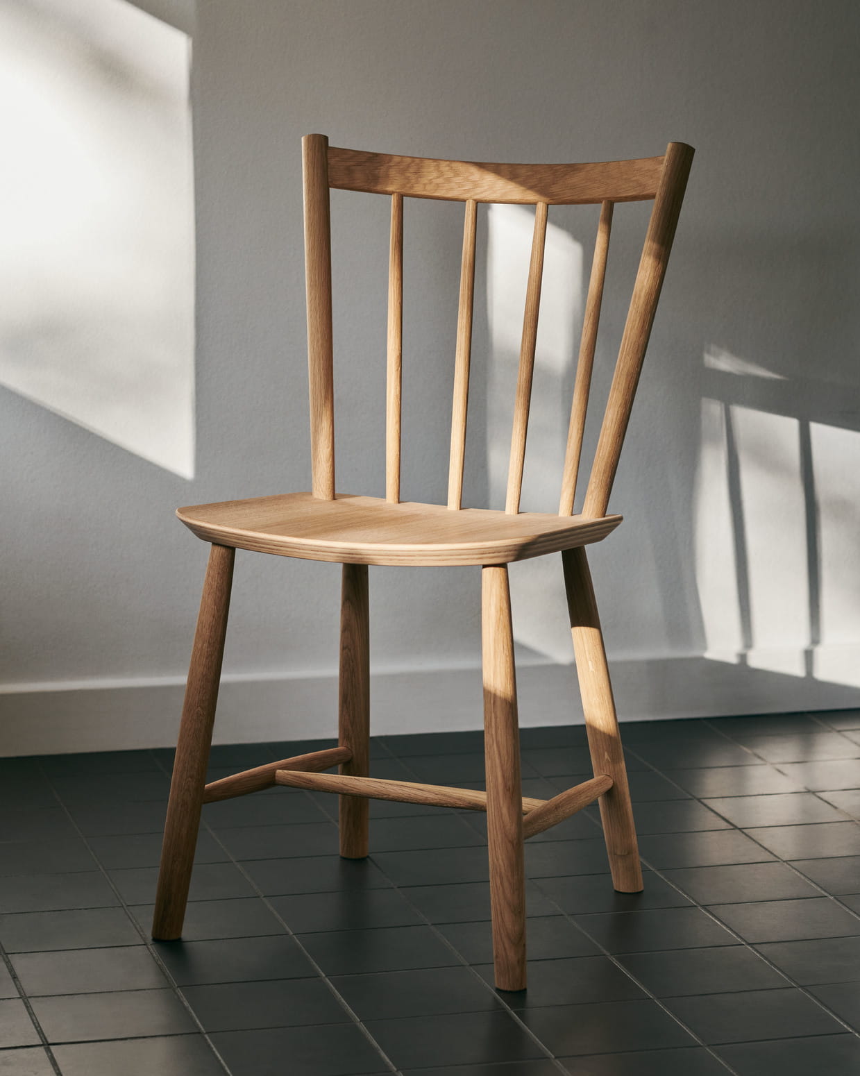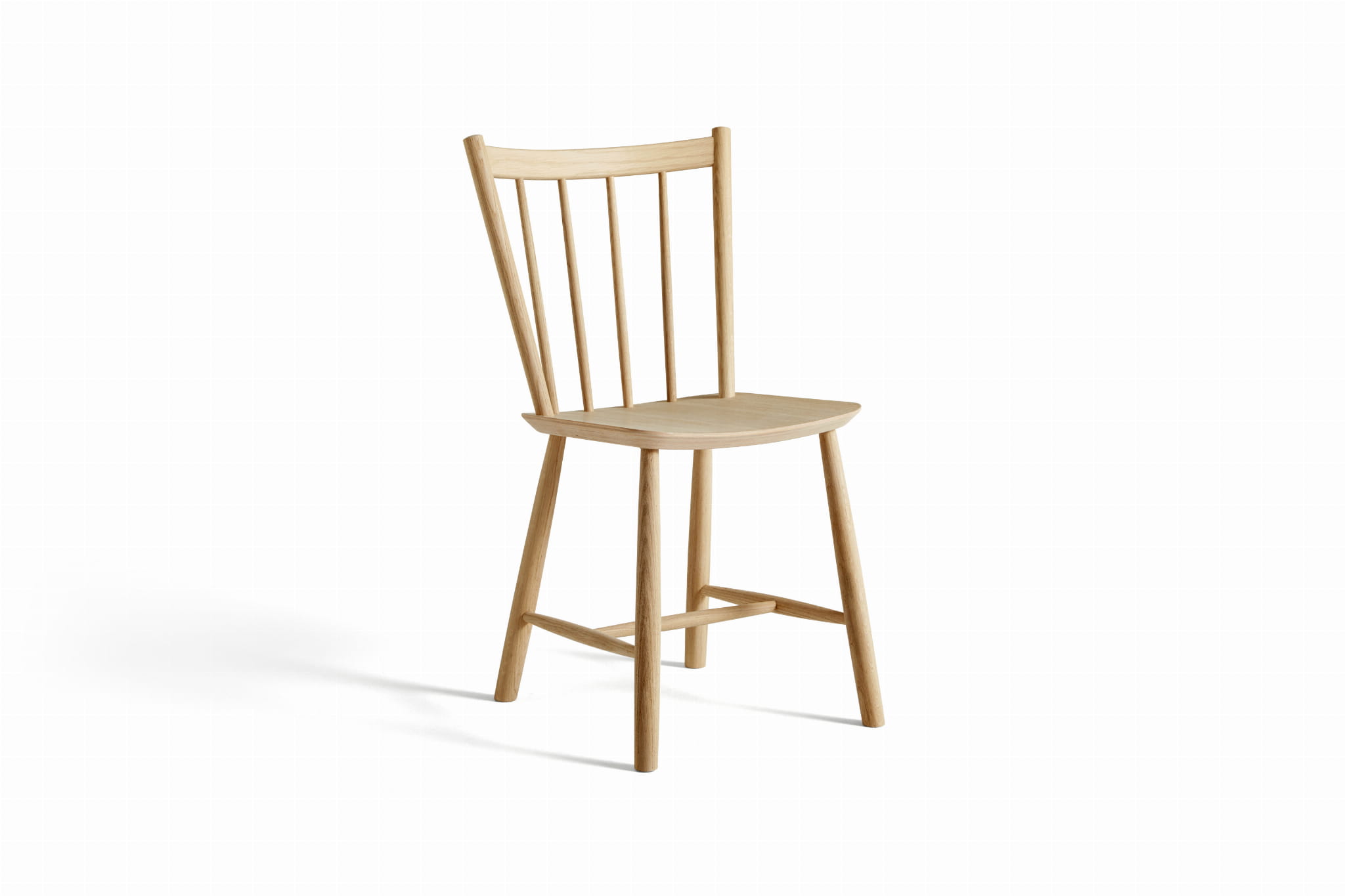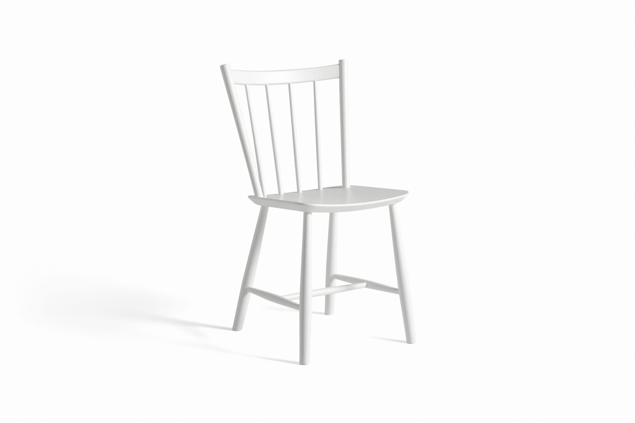 Reprodukcja HAY klasycznego krzesła J41 Børge Mogensena ma lekko pochylone oparcie i szeroko rozstawione wrzeciona tworzące niezakłócony projekt, który oferuje ponadczasową jakość. Wykonany z litego drewna projekt łączy naturalne ciepło i komfort z trwałością. Dostępne w wersji dębowej lub bukowej w różnych wykończeniach olejowanych, naturalnych lub barwionych.