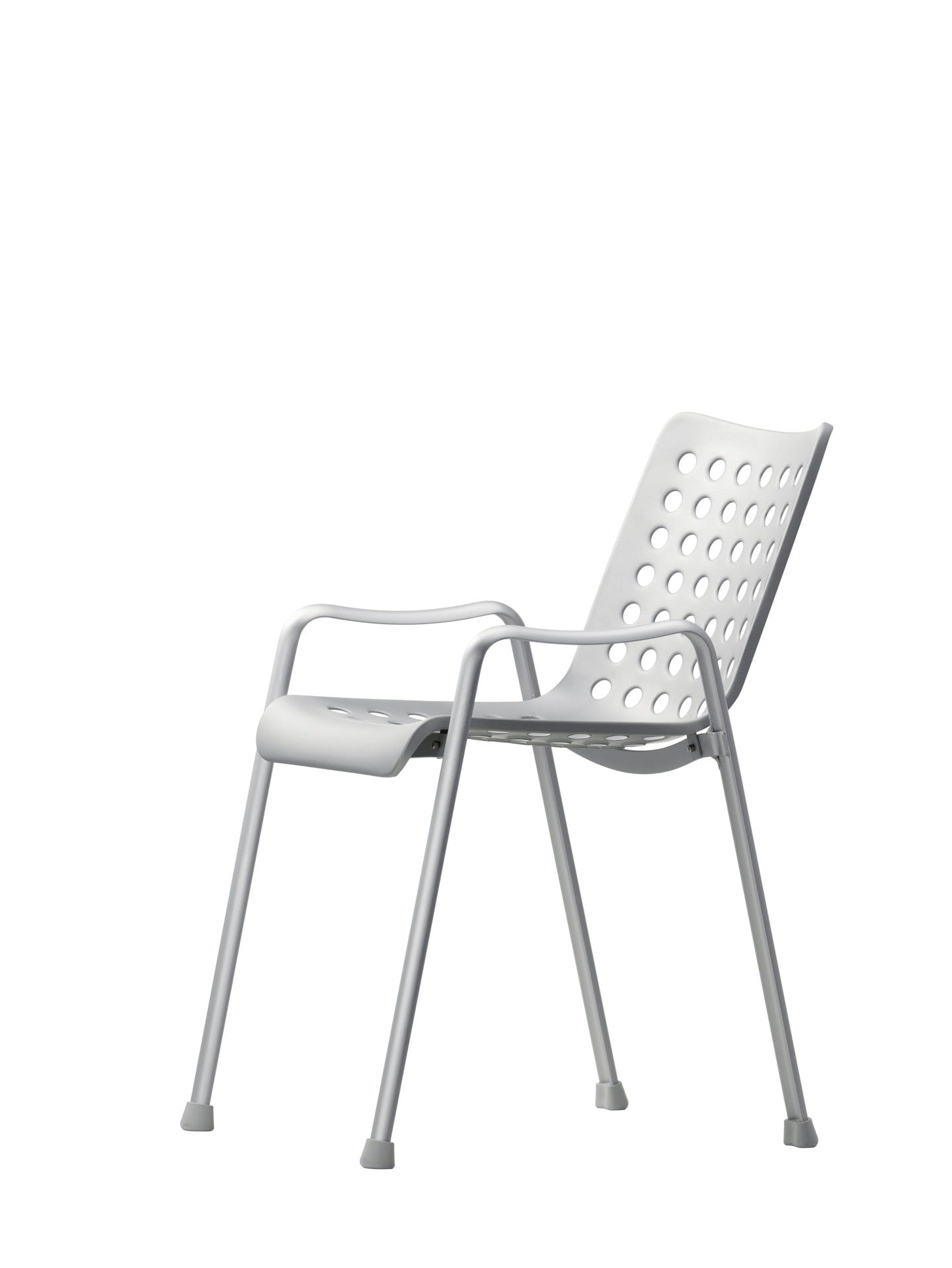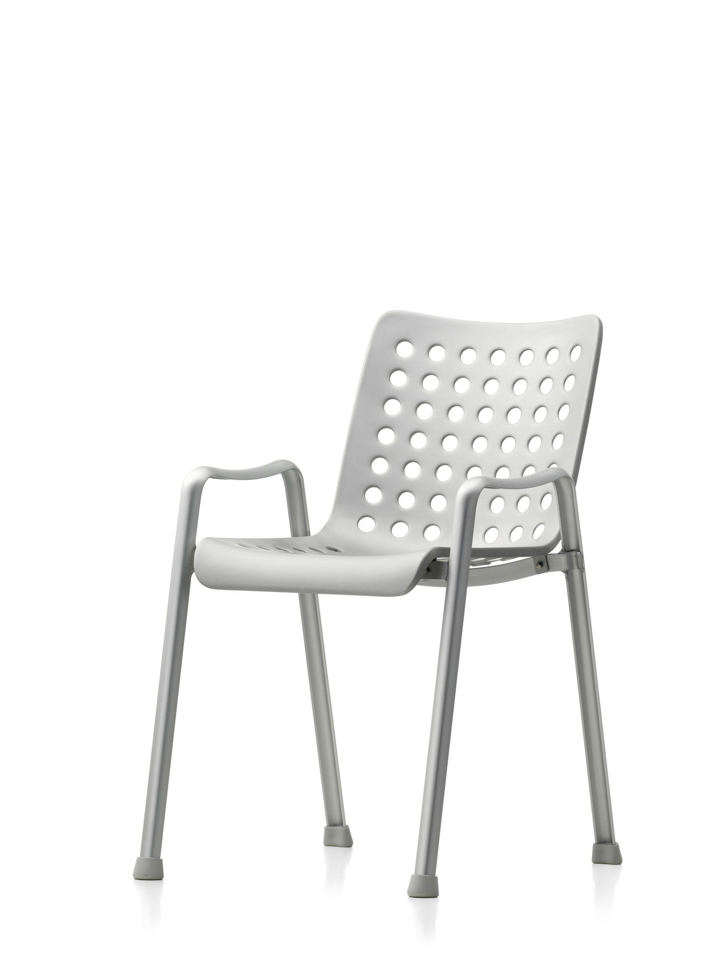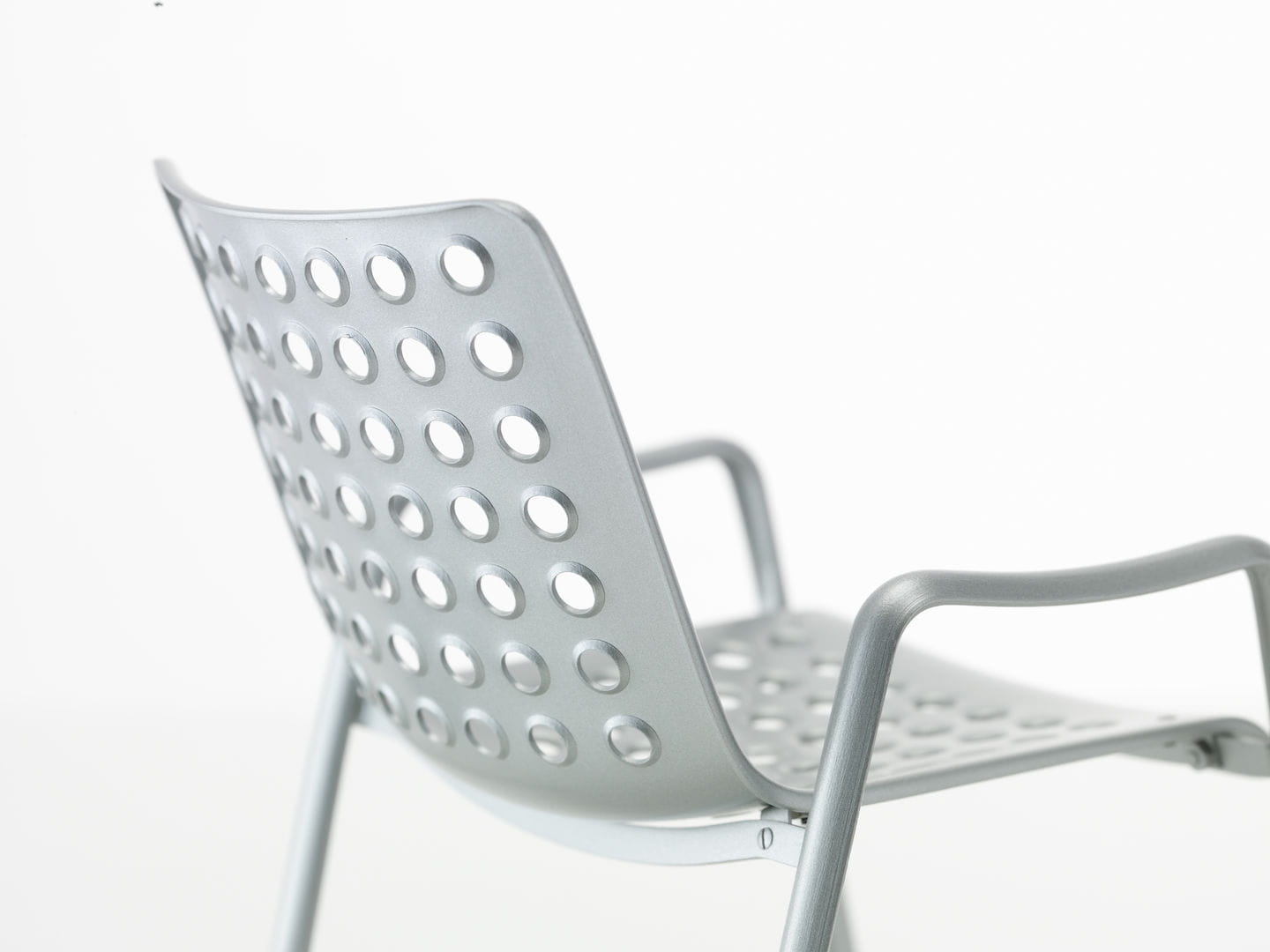 Krzesło Landi, zaprojektowane na szwajcarską wystawę narodową w 1939 roku, zajmuje ważne miejsce w historii dwudziestowiecznego wzornictwa: ten klasyk autorstwa Hansa Coraya ustanowił nową typologię trójwymiarowego, formowanego siedziska na oddzielnej podstawie. Przejrzysta konstrukcja tego w pełni aluminiowego krzesła składa się z dwóch części. Po pierwsze, para profili w kształcie litery U połączonych spawanymi poprzeczkami tworzy samonośną ramę, służącą jednocześnie jako nogi i niskie podłokietniki. Podstawa ta podtrzymuje skorupę siedziska, która idealnie wykorzystuje możliwości materiału: 91 otworów zapewnia nie tylko niewielką wagę i elastyczność wygodnej skorupy, ale także nadaje wdziękowi Landi jego charakterystyczny wygląd.