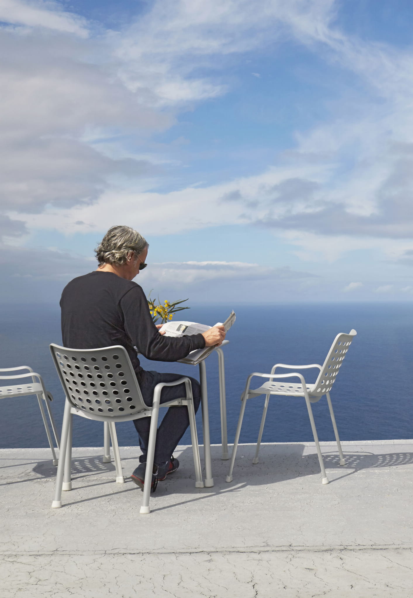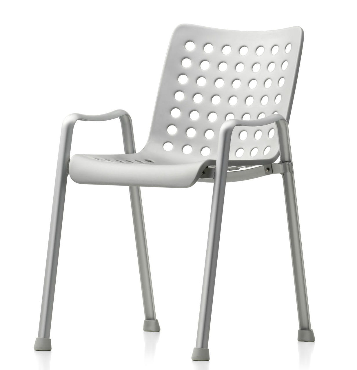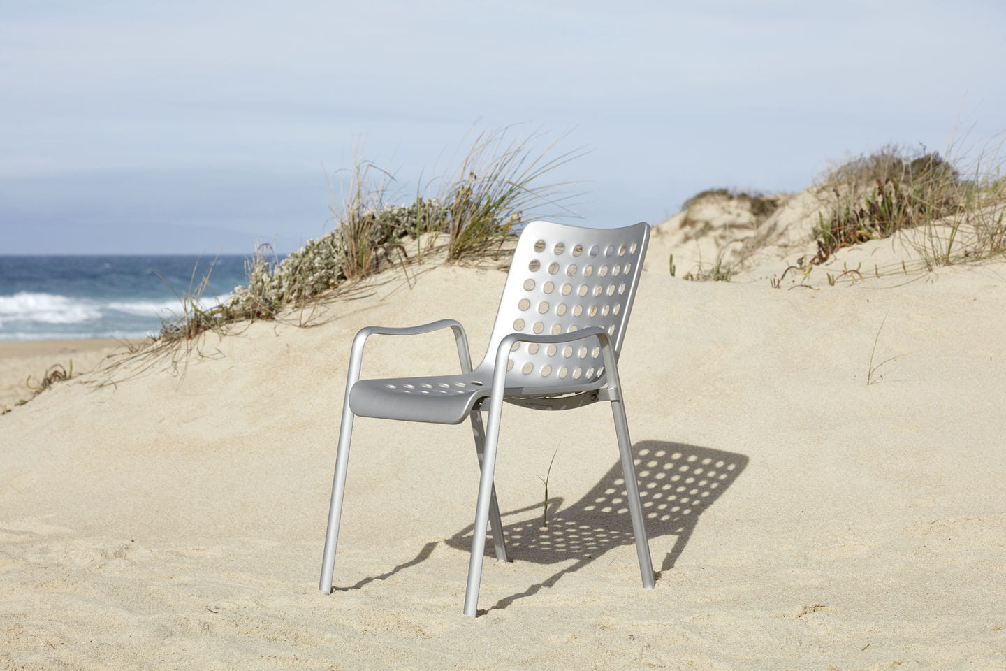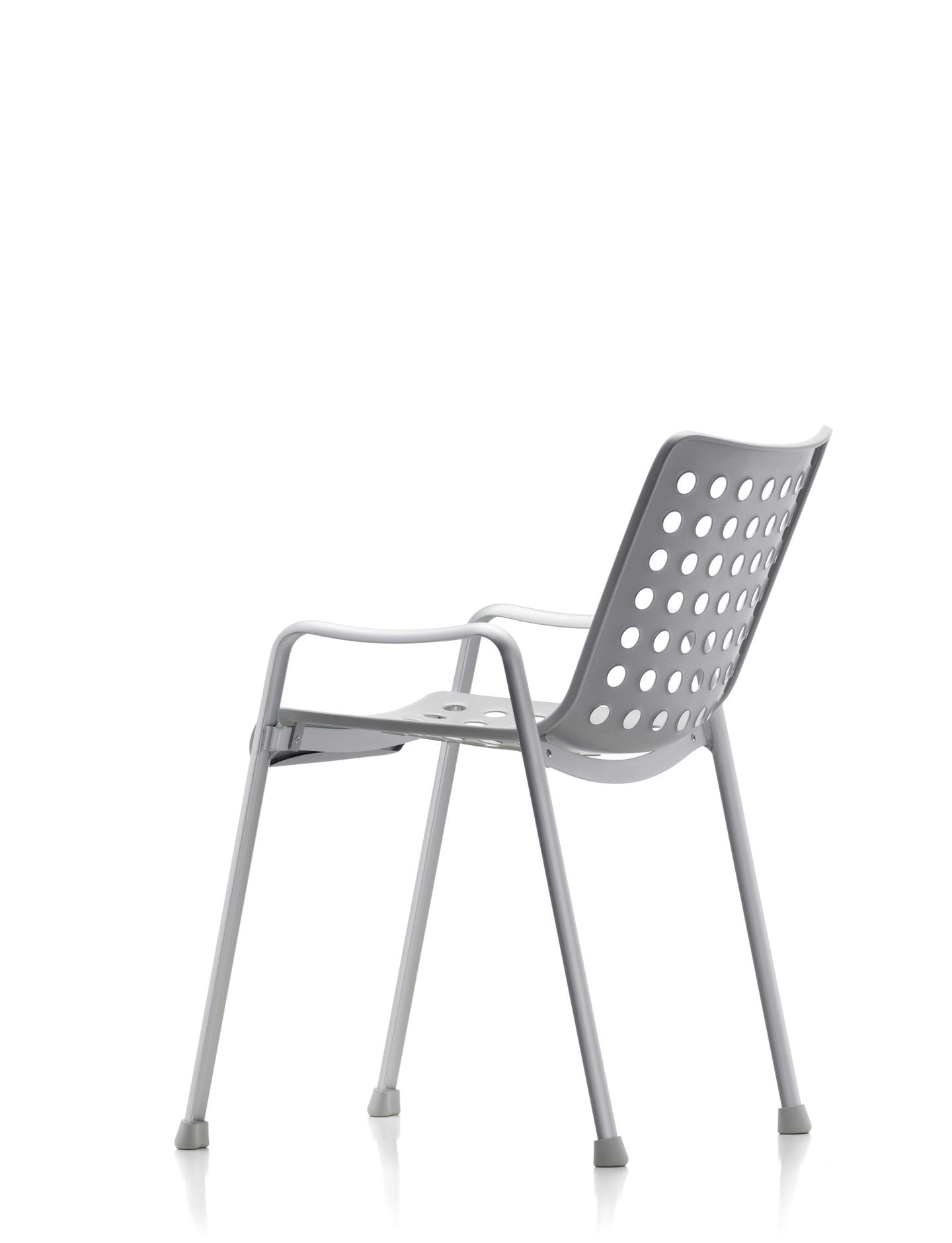 Krzesło Landi, zaprojektowane na szwajcarską wystawę narodową w 1939 roku, zajmuje ważne miejsce w historii dwudziestowiecznego wzornictwa: ten klasyk autorstwa Hansa Coraya ustanowił nową typologię trójwymiarowego, formowanego siedziska na oddzielnej podstawie. Przejrzysta konstrukcja tego w pełni aluminiowego krzesła składa się z dwóch części. Po pierwsze, para profili w kształcie litery U połączonych spawanymi poprzeczkami tworzy samonośną ramę, służącą jednocześnie jako nogi i niskie podłokietniki. Podstawa ta podtrzymuje skorupę siedziska, która idealnie wykorzystuje możliwości materiału: 91 otworów zapewnia nie tylko niewielką wagę i elastyczność wygodnej skorupy, ale także nadaje wdziękowi Landi jego charakterystyczny wygląd.