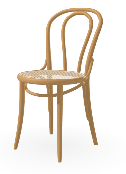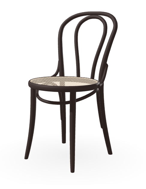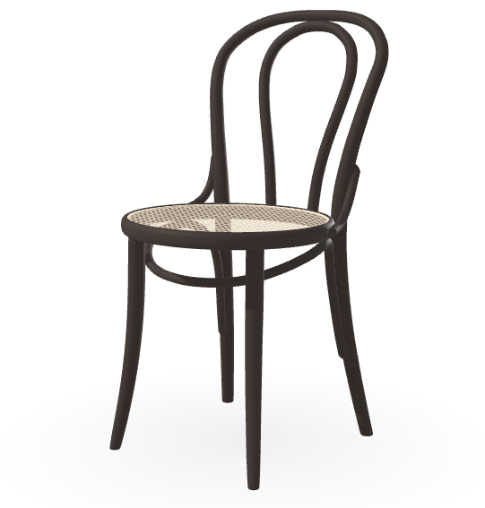 Ten typ krzesła powstał już w 1876 roku. Jego tylne oparcie tworzy ręcznie wyginany łuk kopiujący zewnętrzne linie oparcia.