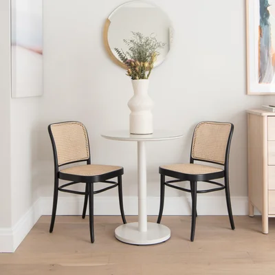 krzesło z plecionką rattanową / siatką Polo i gładkim siedziskiem.