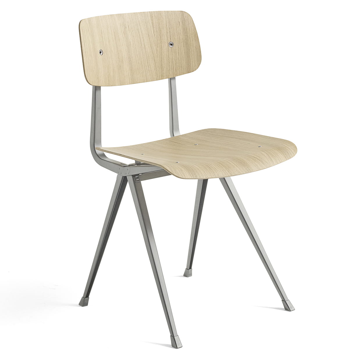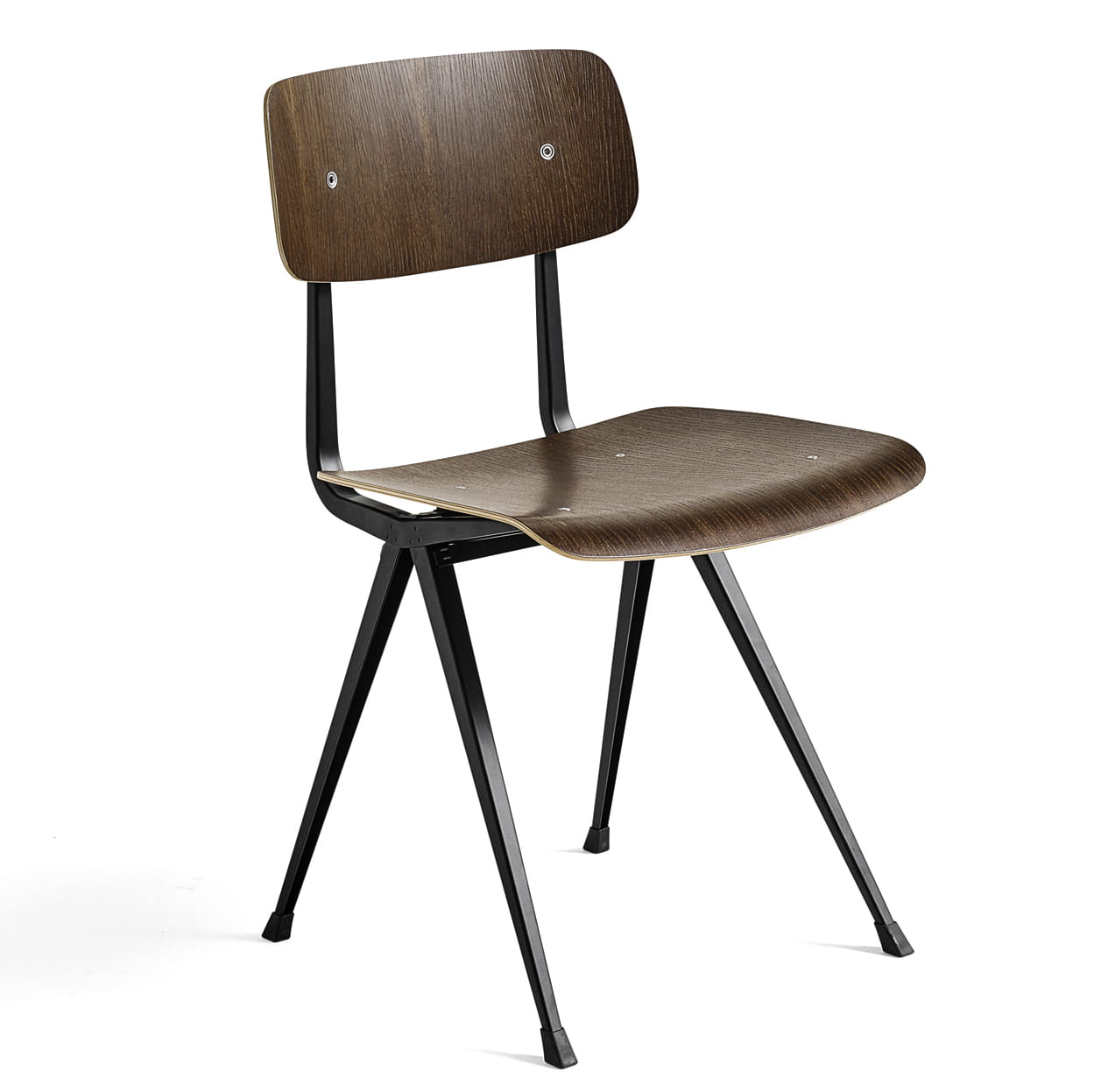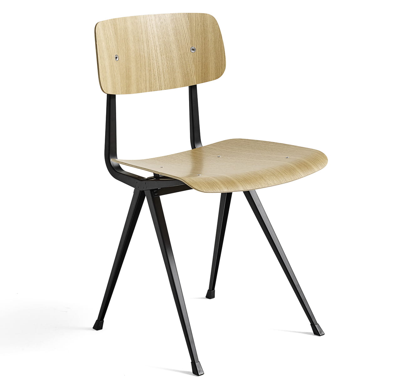 Krzesło Result ma tę samą cienką podstawę z blachy stalowej, dębowe siedzisko i oparcie, co oryginalny Result Chair, ale jest uzupełniony o podwyższone podłokietniki, które wnoszą do projektu dodatkowy komfort i funkcjonalność. Pierwotnie stworzona przez Friso Kramera i Wima Rietvelda podczas pracy w firmie Ahrend w latach 50-tych, kolekcja wyciętych stali została ponownie wprowadzona na rynek przez HAY wraz z firmą Ahrend. Jest ona dostępna w różnych wykończeniach drewna i kolorach podstawy, a także w wariancie z tapicerowanym siedziskiem i w pełni tapicerowaną wersją, przy czym oba modele są oferowane w szerokiej gamie tekstyliów i opcji skórzanych. Wszystkie warianty można skoordynować ze stołem Pyramid Table, co sprawia, że jest to wszechstronny zestaw siedzisk do zastosowania w wielu kontekstach publicznych i prywatnych.