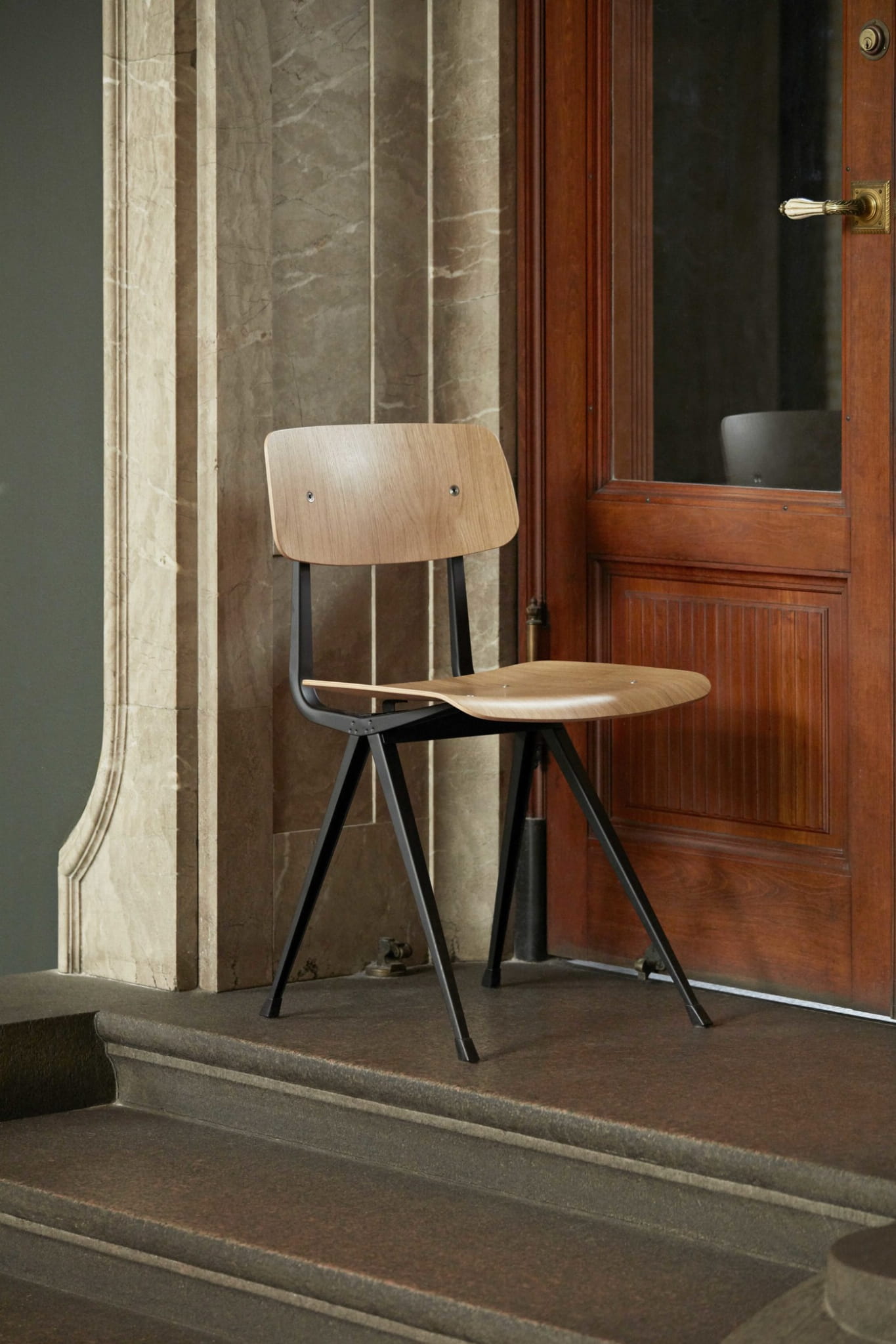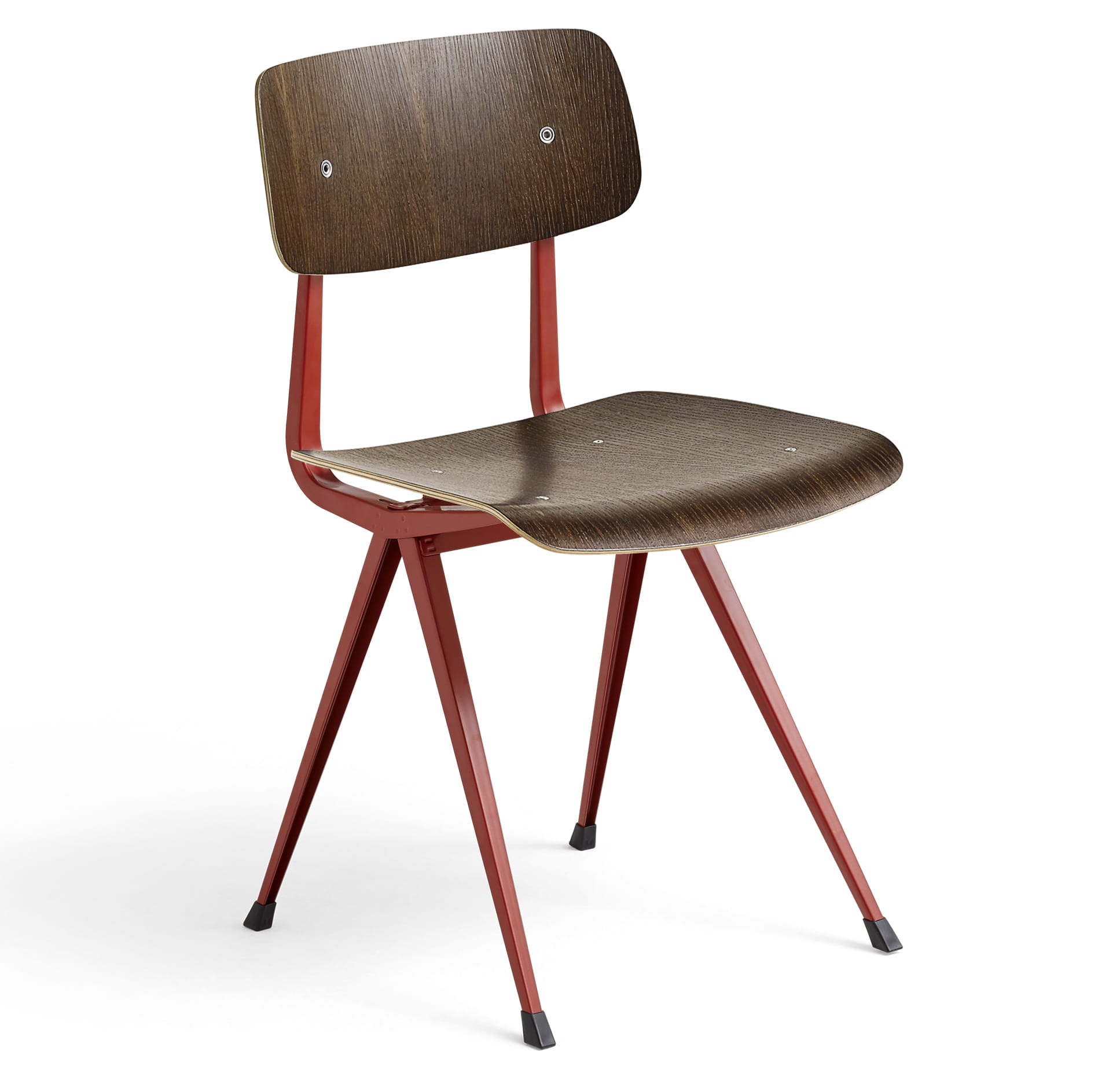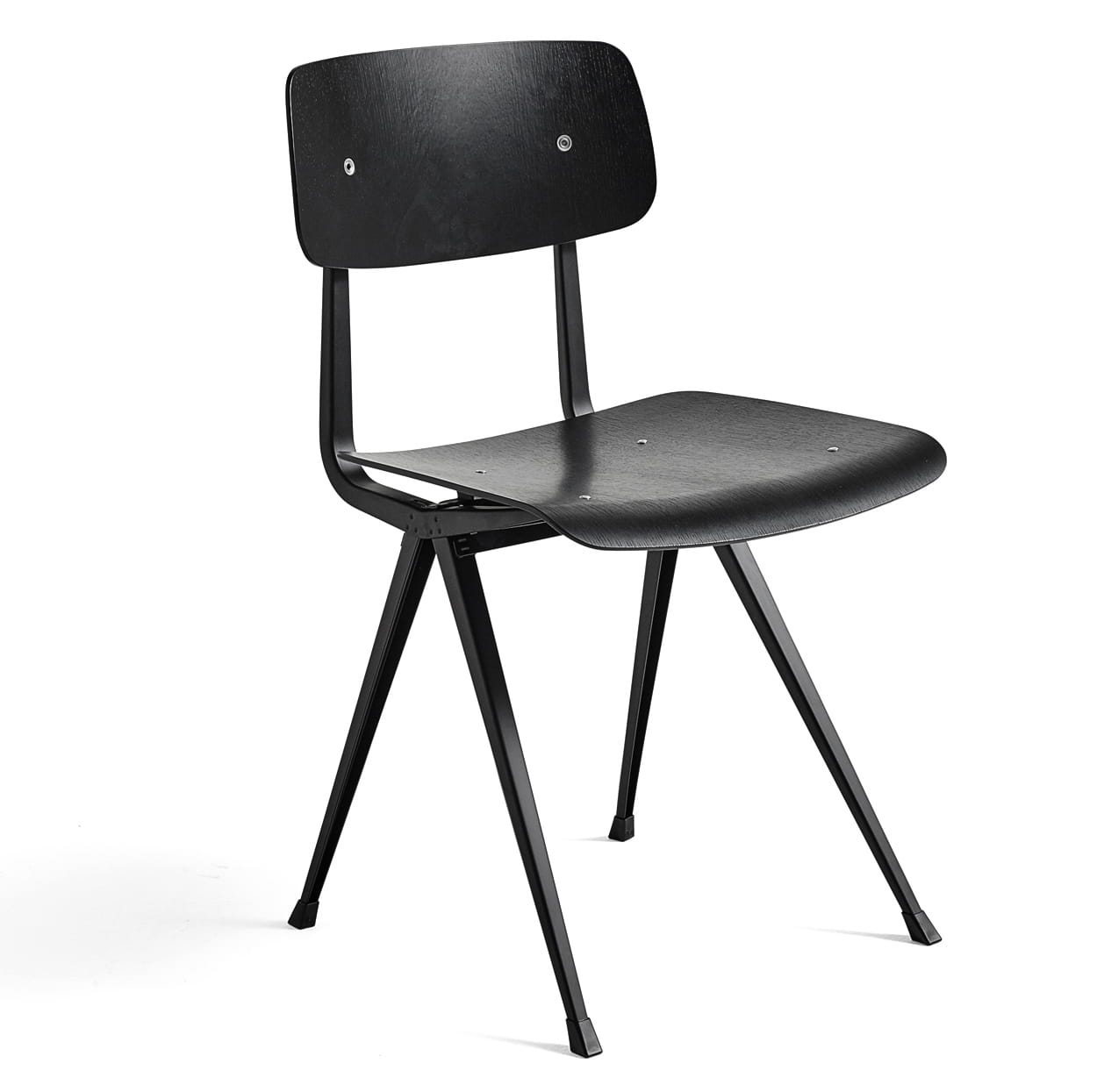 Krzesło Result ma tę samą cienką podstawę z blachy stalowej, dębowe siedzisko i oparcie, co oryginalny Result Chair, ale jest uzupełniony o podwyższone podłokietniki, które wnoszą do projektu dodatkowy komfort i funkcjonalność. Pierwotnie stworzona przez Friso Kramera i Wima Rietvelda podczas pracy w firmie Ahrend w latach 50-tych, kolekcja wyciętych stali została ponownie wprowadzona na rynek przez HAY wraz z firmą Ahrend. Jest ona dostępna w różnych wykończeniach drewna i kolorach podstawy, a także w wariancie z tapicerowanym siedziskiem i w pełni tapicerowaną wersją, przy czym oba modele są oferowane w szerokiej gamie tekstyliów i opcji skórzanych. Wszystkie warianty można skoordynować ze stołem Pyramid Table, co sprawia, że jest to wszechstronny zestaw siedzisk do zastosowania w wielu kontekstach publicznych i prywatnych.