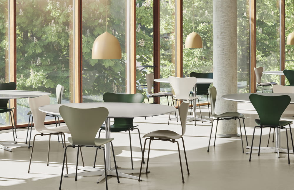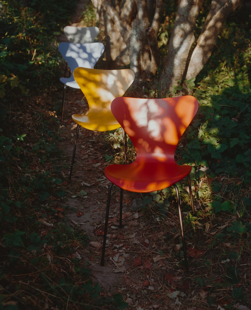 Krzesło Series 7 jest dostępne w 3 różnych wykończeniach: naturalna okleina, malowany jesion jesion lub lakierowane. Wszystkie krzesła wykonane są z forniru formowanego ciśnieniowo. Skorupa jest również dostępna w wersji z przednią lub w pełni tapicerowaną tapicerką w szerokiej gamie tkanin i rodzajów skóry. Oprócz podstawy z 4 nogami (do ustawiania w stosy), jest również wyposażony w obrotową podstawę z regulacją wysokości i kółka lub jako stołek barowy. Krzesło 3107 dostępne jest również w wersji monochromatycznej z nogami malowanymi proszkowo w wybranych kolorach.