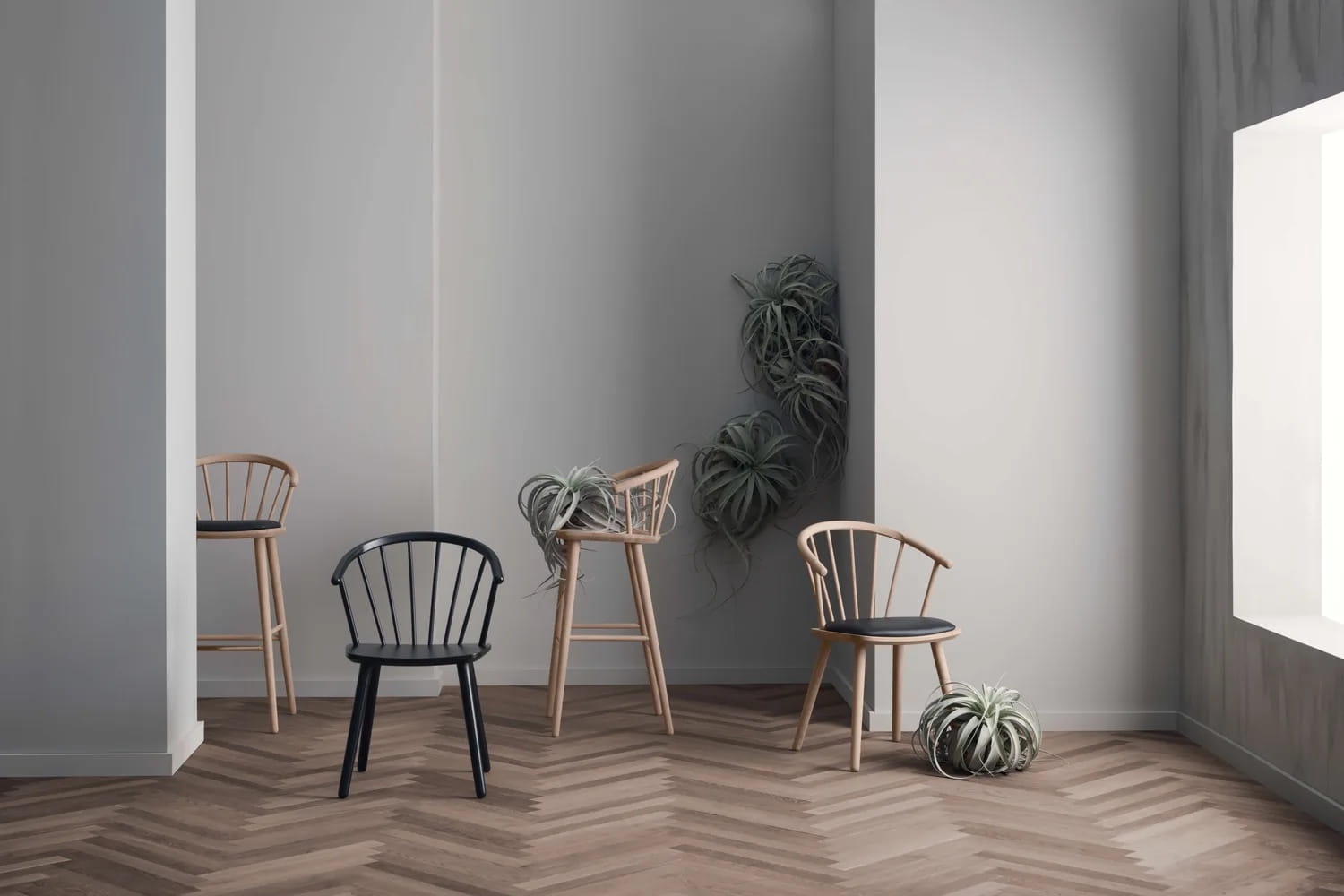 Seria Sleek to autentyczny, skandynawski kunszt, zawierający różne warianty tego samego kultowego konturu. Wykonane z formowanego, litego drewna z certyfikatem FSC. Celem było stworzenie nowoczesnego krzesła z wyraźnymi odniesieniami do klasycznego wzornictwa mebli. Seria oferuje zarówno wariant krzesła do jadalni, jak i komplementarną wersję stołka barowego. Każdy wzór ma łagodne krzywe, które sprawiają, że Sleek napawa spokojem, niezależnie od wybranego projektu. Rezultatem jest wygodne i estetyczne krzesło, które jest hołdem dla tradycji, dobrego rzemiosła i uczciwych materiałów.