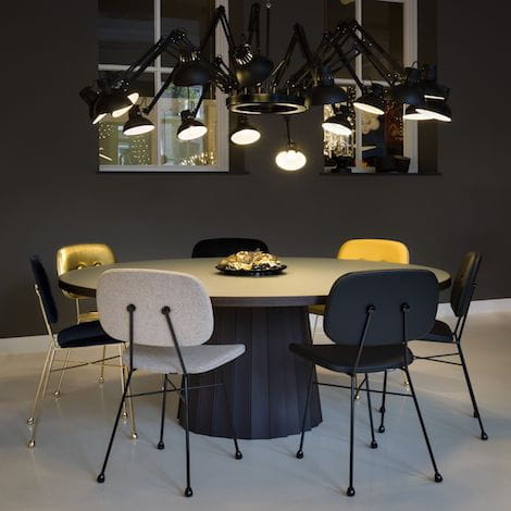 Niczym tajemniczym zaklęciem magicznym, krzesło szkolne w stylu retro jest zanurzone w zaczarowanym złotym nektarze, który zmywa jego surowość i zalewa je błyszczącą aureolą. Czy nie jest to typowo szkolne życzenie, gdy patrzysz przez okno i masz nadzieję, że zaraz zacznie się bajka? W 2018 roku The Golden Chair otrzymało czarną oprawioną siostrę i obie można ubrać w różne tkaniny pasujące do wszelakich wnętrz.