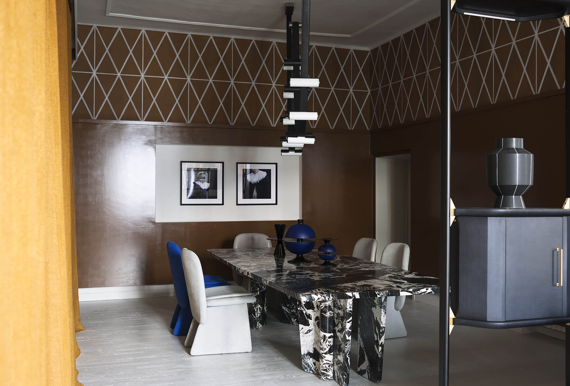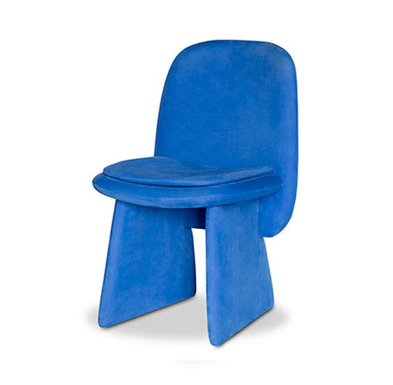 Krzesło o wyrazistej formie w całości tapicerowane skórą Baxter. Dostępne z poduszką na siedzisku lub bez.