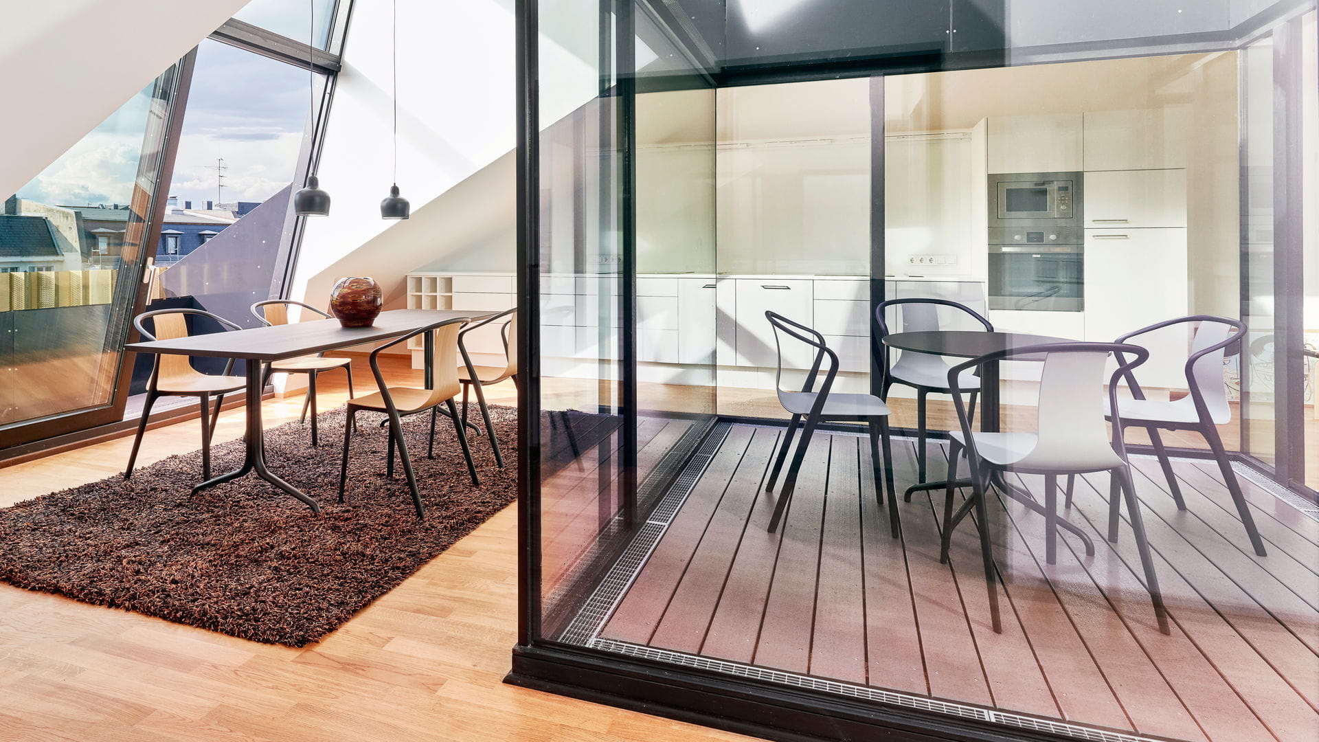 Charakterystyczną cechą krzesła Belleville są kontrastowe materiały, z których wykonane są siedziska z formowanej sklejki oraz smukła czarna plastikowa rama. Eleganckie podłokietniki stanowią integralną część zakrzywionej ramy konstrukcyjnej i zapewniają doskonały komfort. Krzesło Belleville jest również dostępne z siedziskiem z tworzywa sztucznego lub w wersji tapicerowanej.