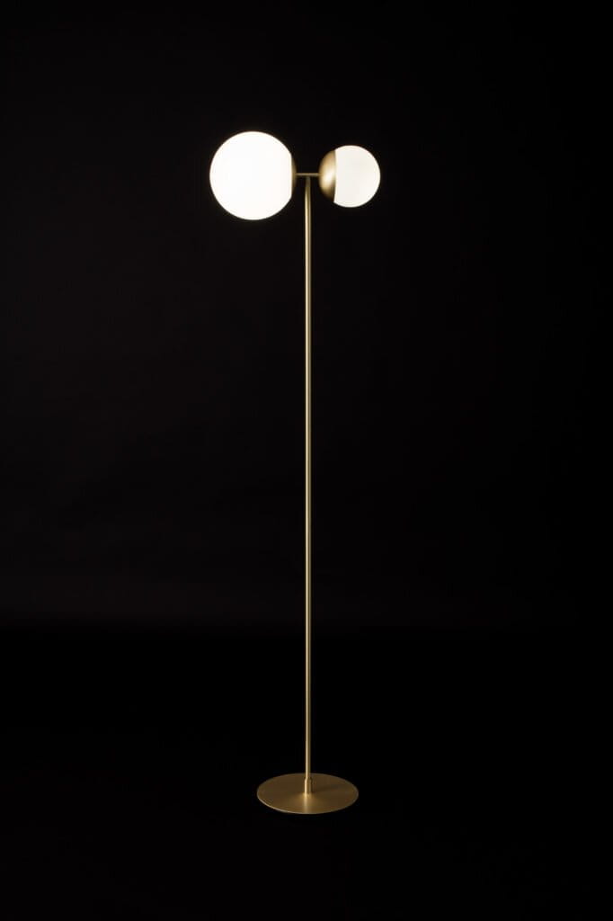 Lampa wykonana z mosiądzu, aluminium i szkła.
