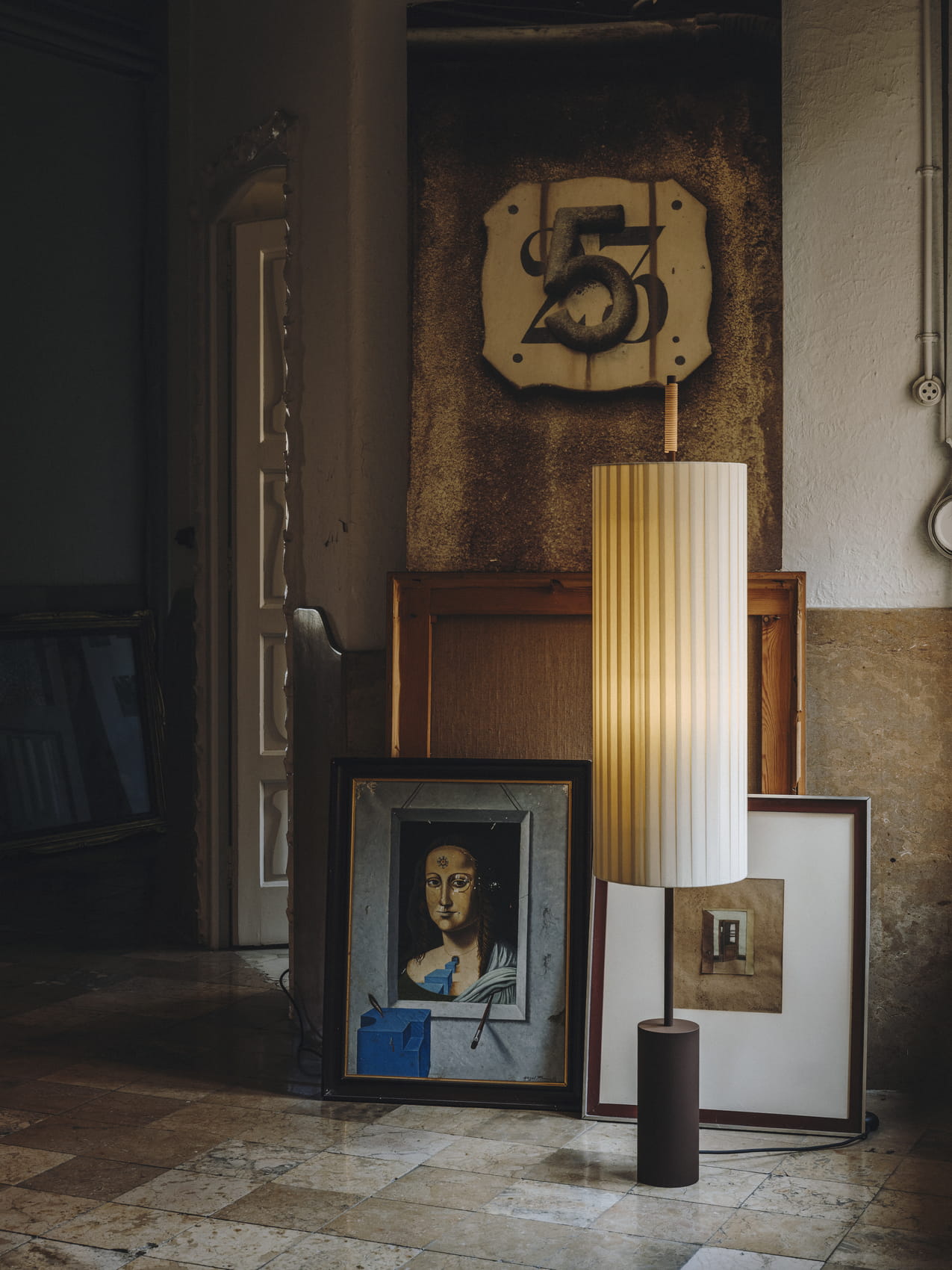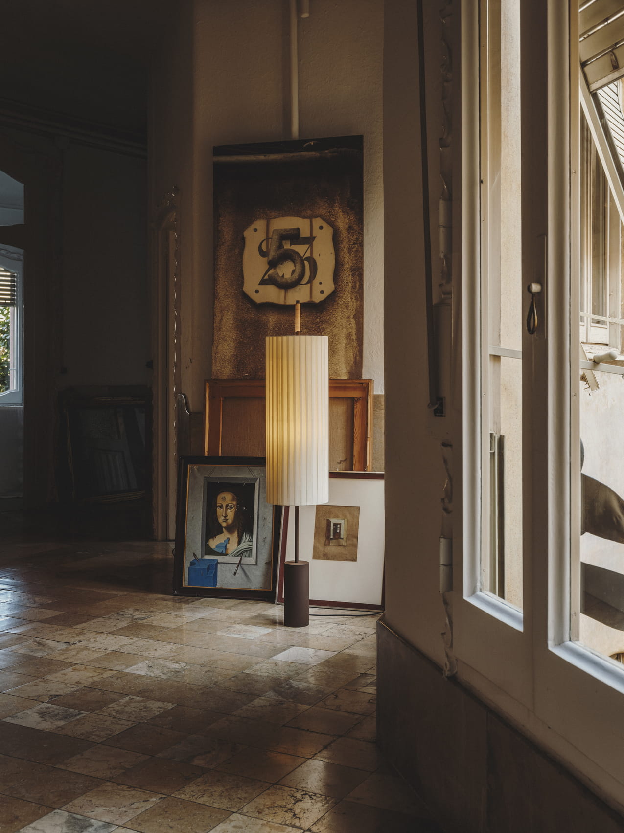 Równowaga materiałów, z których składa się ta lampa - jej bawełniany klosz, metaliczna struktura i zszyty skórzany uchwyt - jest potwierdzeniem przemysłowego kunsztu. Dórica to imponująca lampa, która przywołuje na myśl klasyczną kolumnę dorycką.