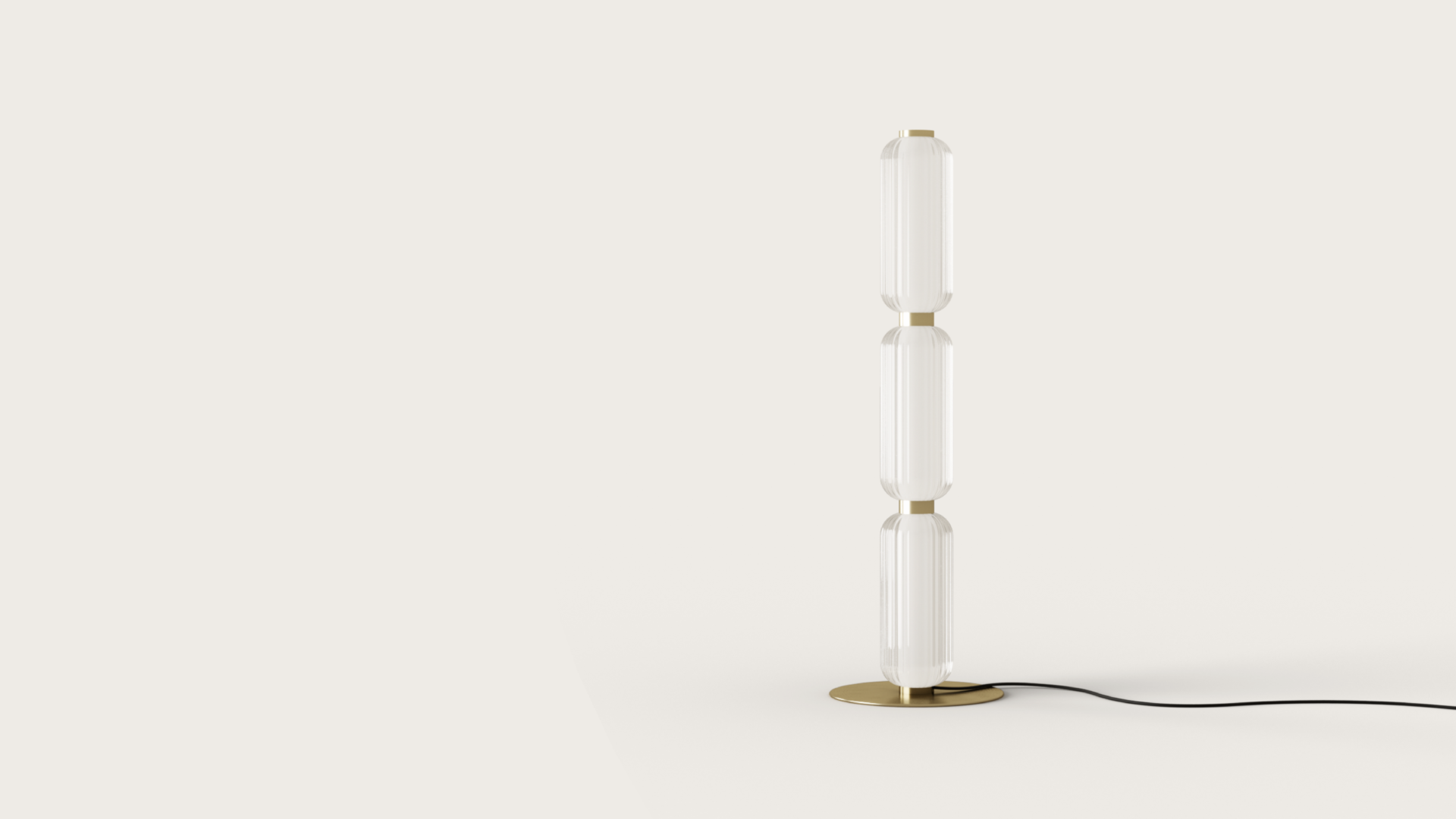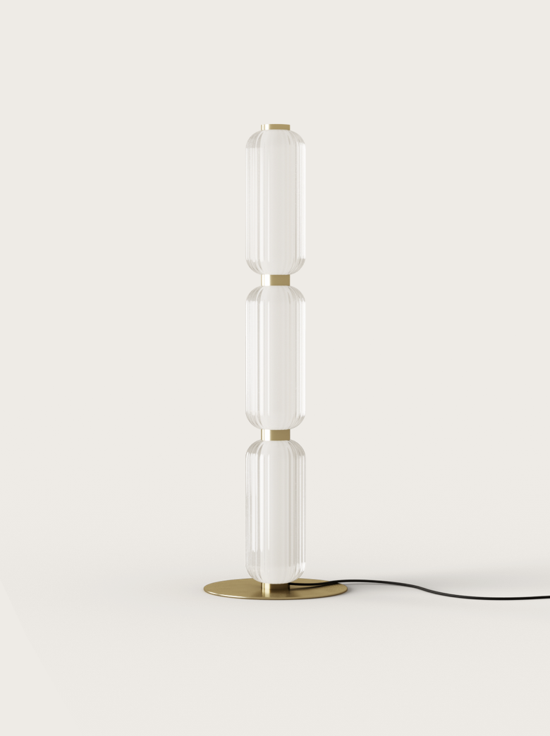 Lampa podłogowa Elma wyróżnia się starannym doborem materiałów, które tworzą wyjątkowy efekt wizualny. Ryflowane szkło o delikatnej fakturze dodaje lampie lekkości, jednocześnie rozpraszając światło w sposób miękki i przyjemny dla oka. Uzupełnieniem jest wykończenie w dwóch stylowych wariantach: postarzane złoto, które nadaje wnętrzom ciepłego charakteru, lub matowa czerń, idealna do nowoczesnych aranżacji. Dzięki tym detalom Elma Aromas doskonale wpisuje się w różnorodne przestrzenie – od klasycznych po minimalistyczne.