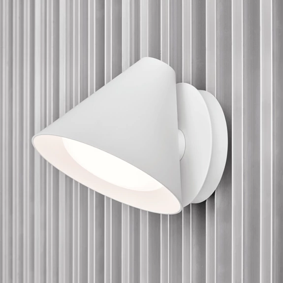 Charakterystyczny stożkowaty klosz lampy ściennej ma wbudowany zakrzywiony dyfuzor. Zapewnia to atrakcyjne i nieoślepiające światło. Delikatne światło emitowane jest również w górę przez dyskretny, jednolity otwór w górnej części klosza, tworząc doskonałą atmosferę. Oprawę można zamontować skierowaną w dół, aby skierować światło w określone miejsce, lub w górę, aby uzyskać światło pośrednie.