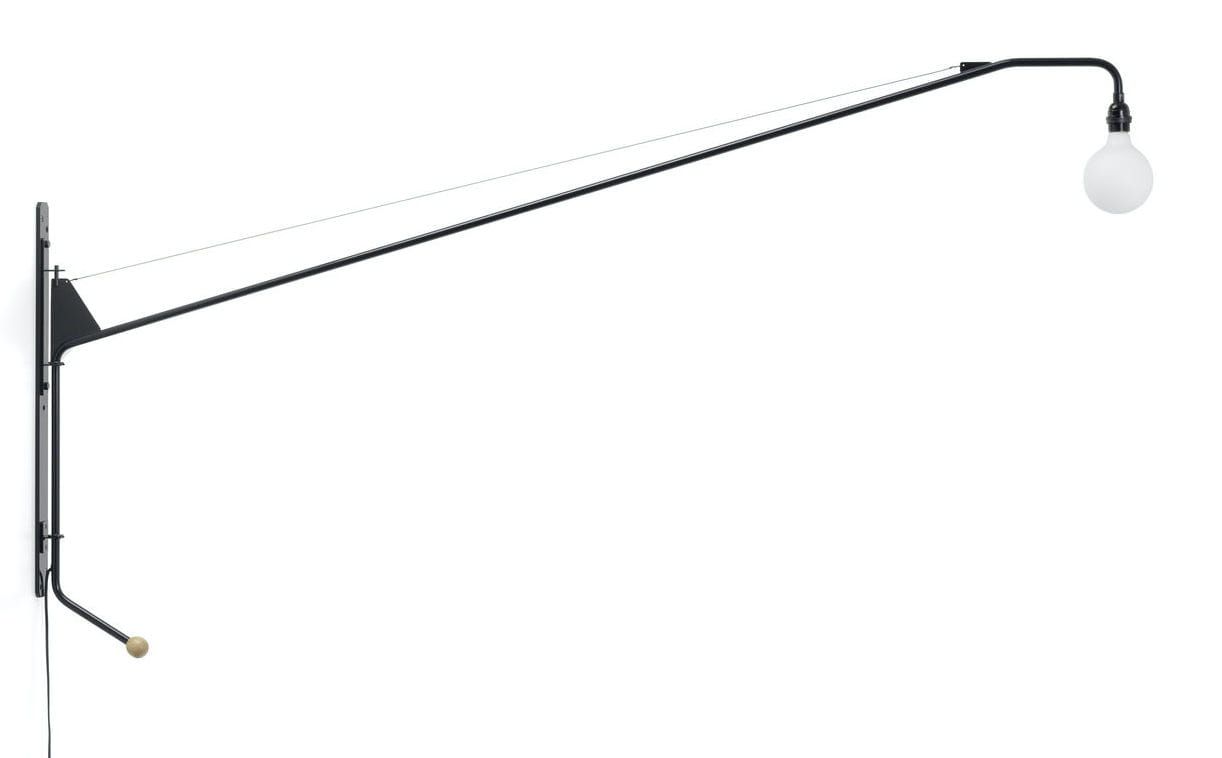 Zaprojektowana jako obrotowa lampa ścienna do „Maison Tropique”, Potence jest uważana za jedno z purystycznych arcydzieł Jeana Prouvé. Fascynacja tą ponad dwumetrową, ściemnialną oprawą, wynika z oszczędności materiałów i form. Zredukowana do tego, co najważniejsze - żarówki i obrotowego uchwytu ściennego - lampa ścienna z długim wahaczem jest wykonana z malowanej proszkowo rurki stalowej z uchwytem z drewna dębowego. Lampa jest sterowana ściemniaczem przewodowym i wyposażona w żarówkę.