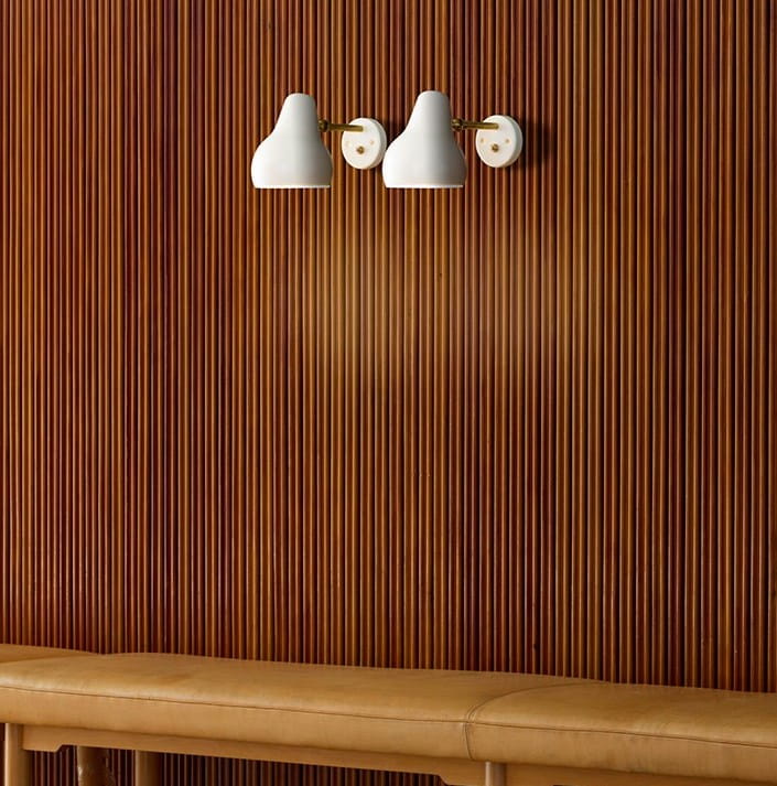 Lampa ścienna VL38 jest oparta na oryginalnym projekcie lampy stołowej VL38. Lampa stołowa VL38 została pierwotnie zaprojektowana pod koniec lat 30. przez Vilhelma Lauritzena we współpracy z Louisem Poulsenem na potrzeby budowy budynku Radiohuset (duńskiej siedziby nadawców) w Kopenhadze (dziś Królewska Duńska Akademia Muzyczna). Projekt lampy Vilhelma Lauritzena, VL38 i lampa wisząca VL45, oba zaprojektowane dla Radiohuset, zaczęły pojawiać się w katalogach Louis Poulsen po II wojnie światowej w połowie lat 40-tych. VL38 w kolorze białym/mosiądzu został ponownie wprowadzony na rynek jesienią 2016 roku. Aby dostosować się do współczesnych postępów w technologii oświetleniowej i efektywności energetycznej, oprawy zostały wyposażone w diody LED. Czarna edycja VL38 wprowadzona jesienią 2017 roku ma mocniejszy zarys niż oryginalna biała wersja, zachowując jednak uwielbiany wygląd retro i miękki, zakrzywiony wyraz oryginalnego projektu.
