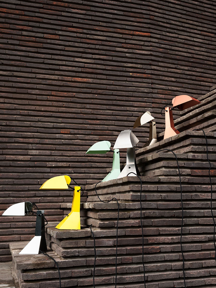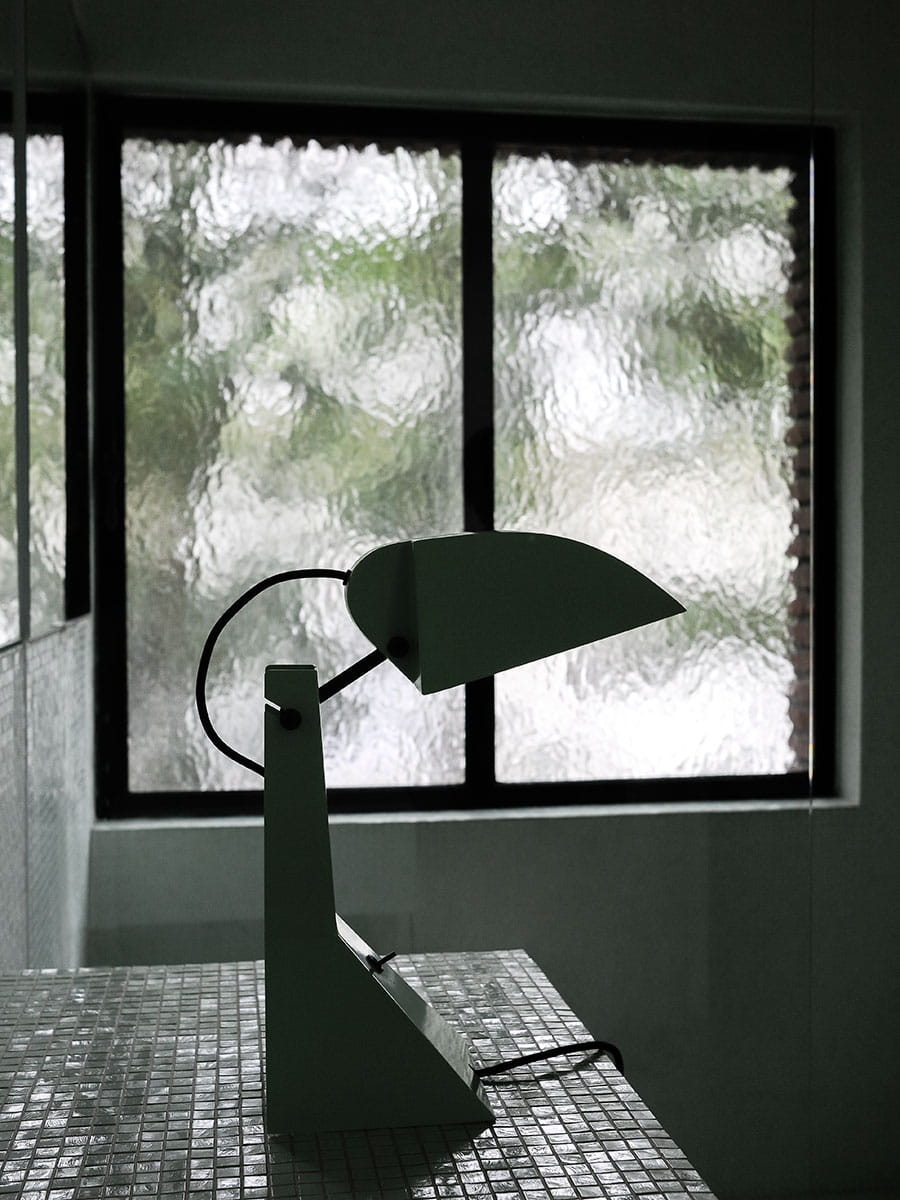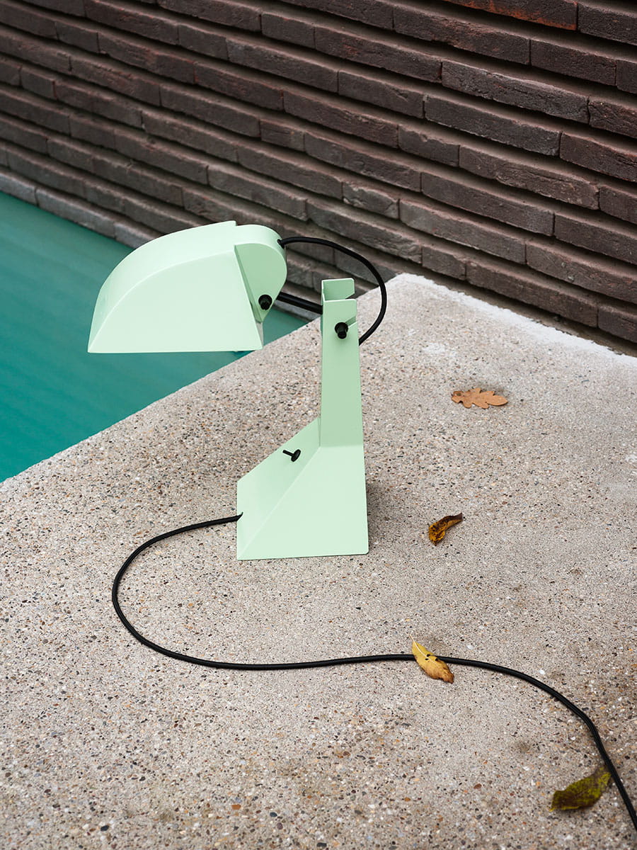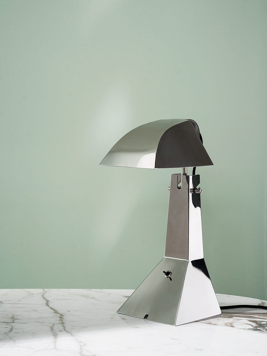 Projekt tej lampy pochodzi z 1963 roku, a dziś jest ponownie wydany pod nazwą E63. Ten alfanumeryczny kod jest odzwierciedleniem intelektualnej złożoności jej projektanta, Umberto Rivy: po części architekta, po części projektanta, po części artysty, po części badacza światła. Lampa stołowa zaprojektowana z wielką precyzją, charakteryzująca się prostymi liniami wokół szerokich powierzchni, które pozornie nadają solidną formę samemu światłu: stal, niemalże zbroja, chroniąca cenne źródło.