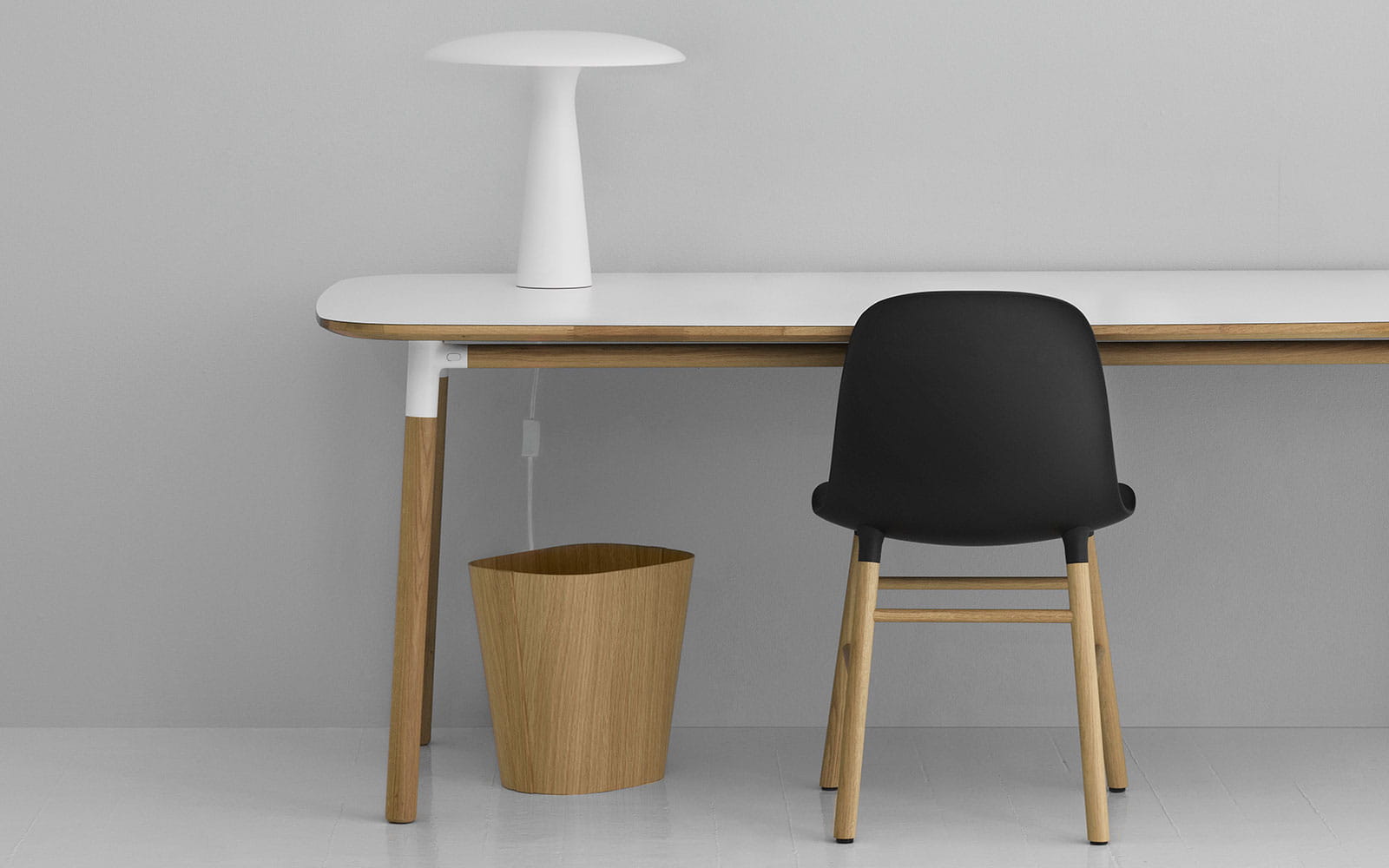 Lampa Shelter jest dostępna w klasycznym kolorze czarnym, białym lub szarym. Lampa stołowa tworzy przytulną atmosferę oświetleniową w rogu salonu lub gdy jest umieszczona obok fotela czy sofy. Lampa Shelter doskonale nadaje się również jako lampka do czytania w biurze lub w sypialni.