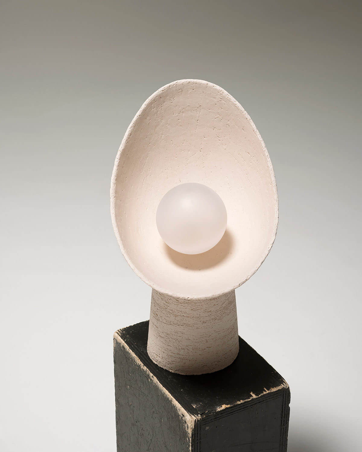 Mała kula światła, która niemal wygląda jak perła wciąż zamknięta w swojej muszli, olśniewa absolutną czystością. Ceramika i szkło opalowe ubrane są w elegancję i prostotę, w rzeźbiarską lampę, która podkreśla delikatne połączenie materiałów połączonych tymi samymi chromatycznymi odcieniami.
