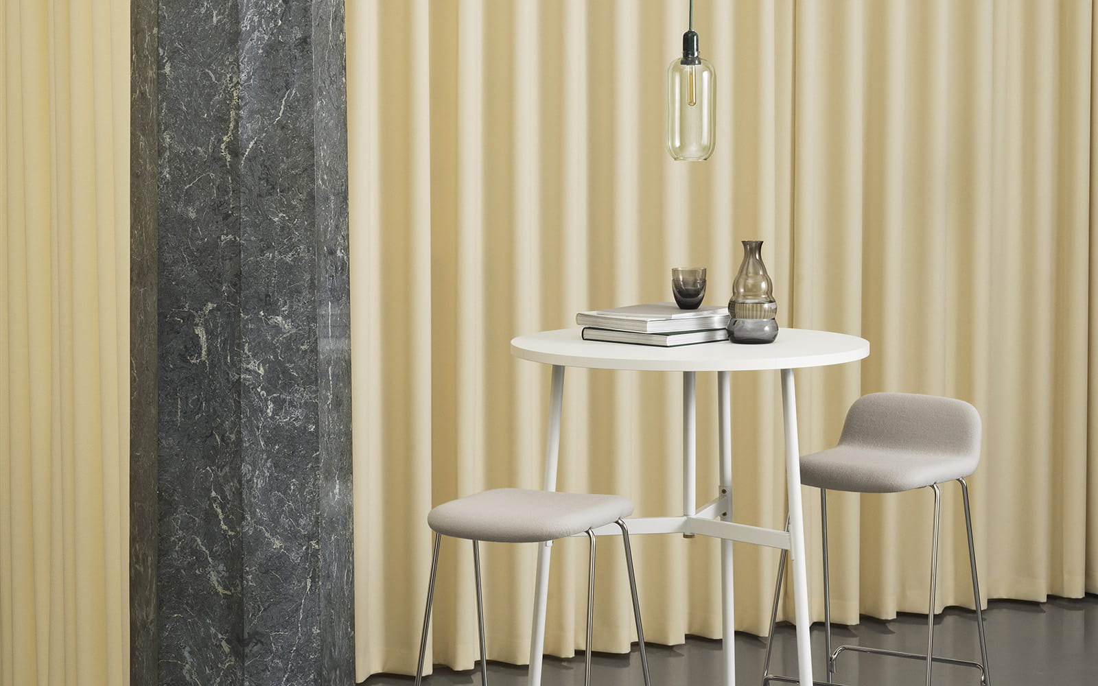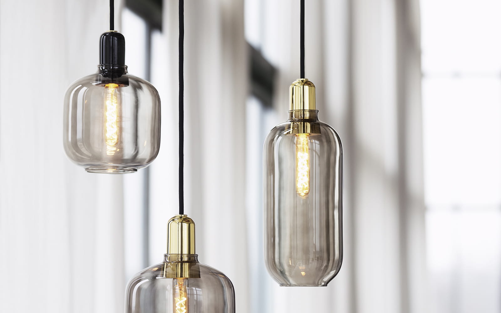 Kolekcja lamp emituje piękne i komfortowe światło, a jej wyrafinowany design może stanowić element wielu różnych wystrojów wnętrz. Powieś jedną lampę Amp w korytarzu, w rogu salonu lub stwórz skupisko lamp Amp nad stołem w jadalni, aby uzyskać efekt nowoczesnej sali balowej.