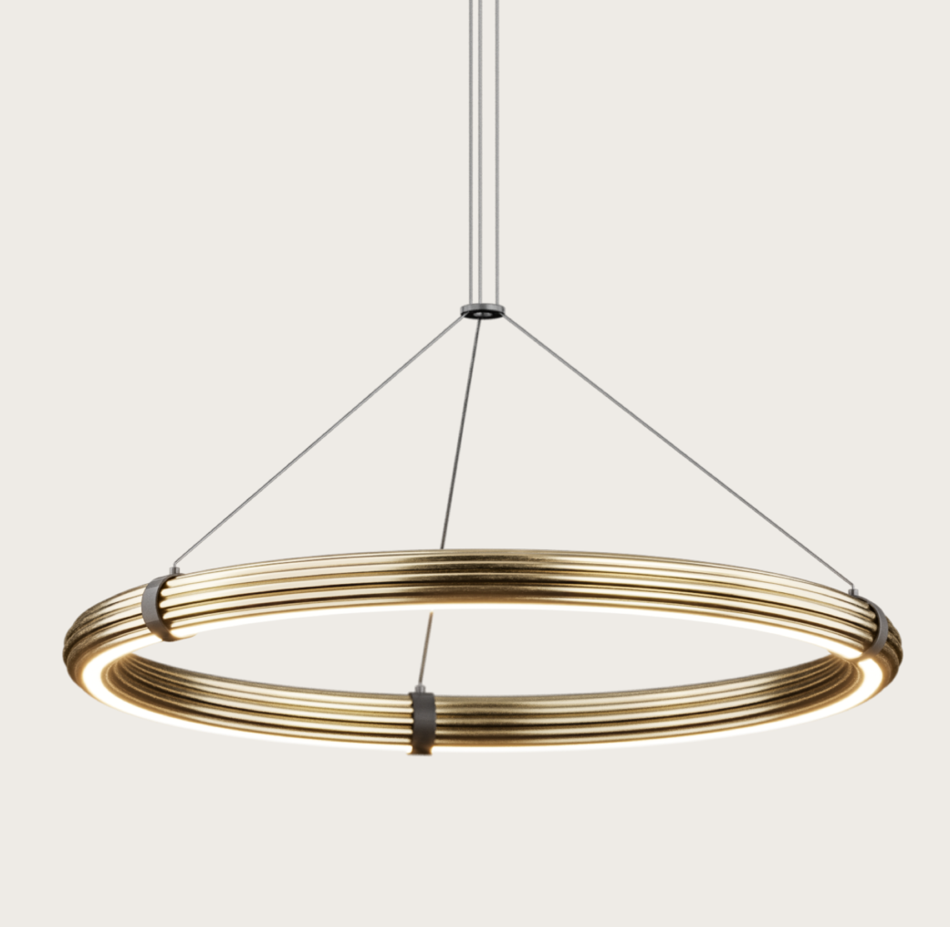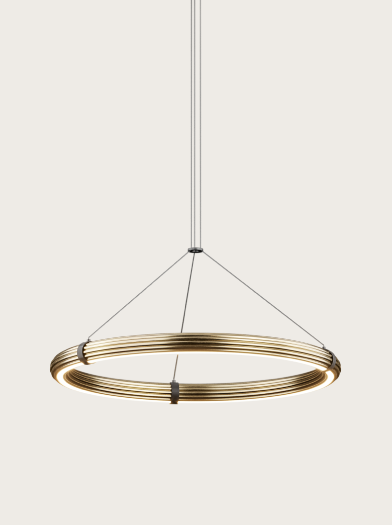 Lampa z nowej kolekcji Ellie marki Aromas del Campo to dekoracyjna obręcz, która tworzy piękny efekt świetlny i stanowi intrygujący obiekt we wnętrzu. Nowoczesna lampa sprawdzi się we wnętrzach w stylu loftowym, minimalistycznym i nowoczesnych aranżacjach, także w grupie kilku lamp.