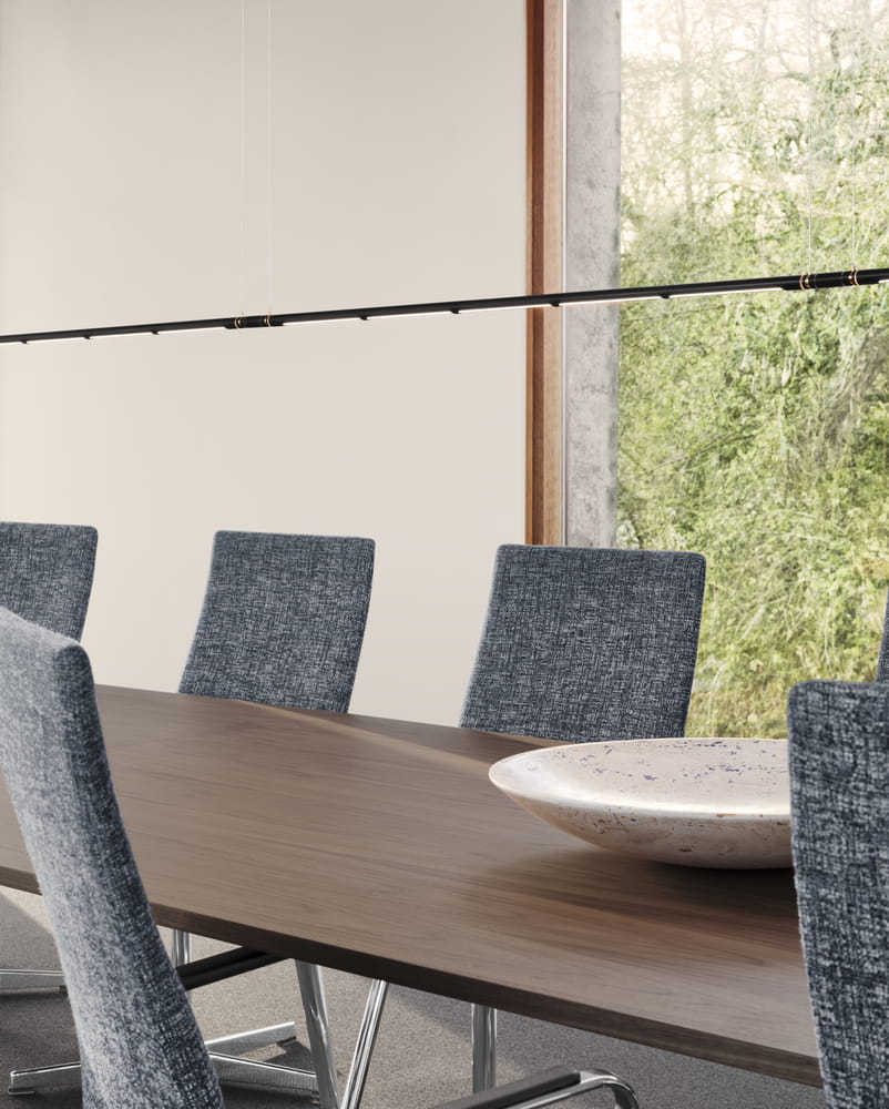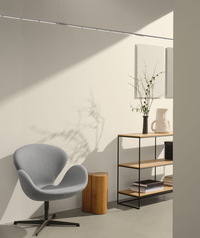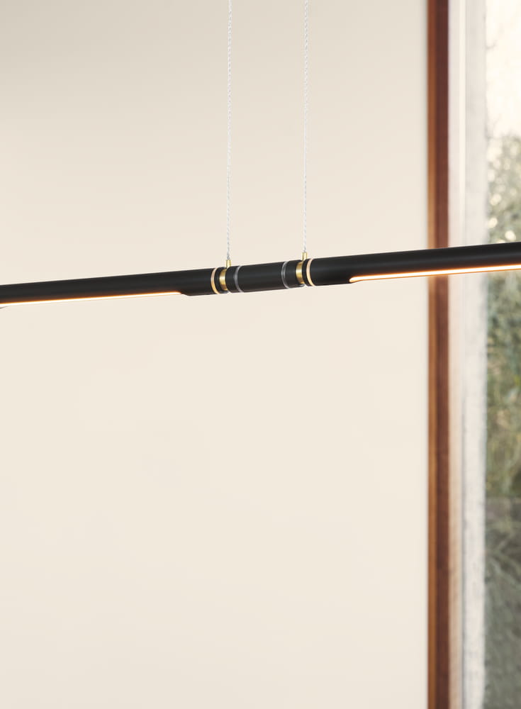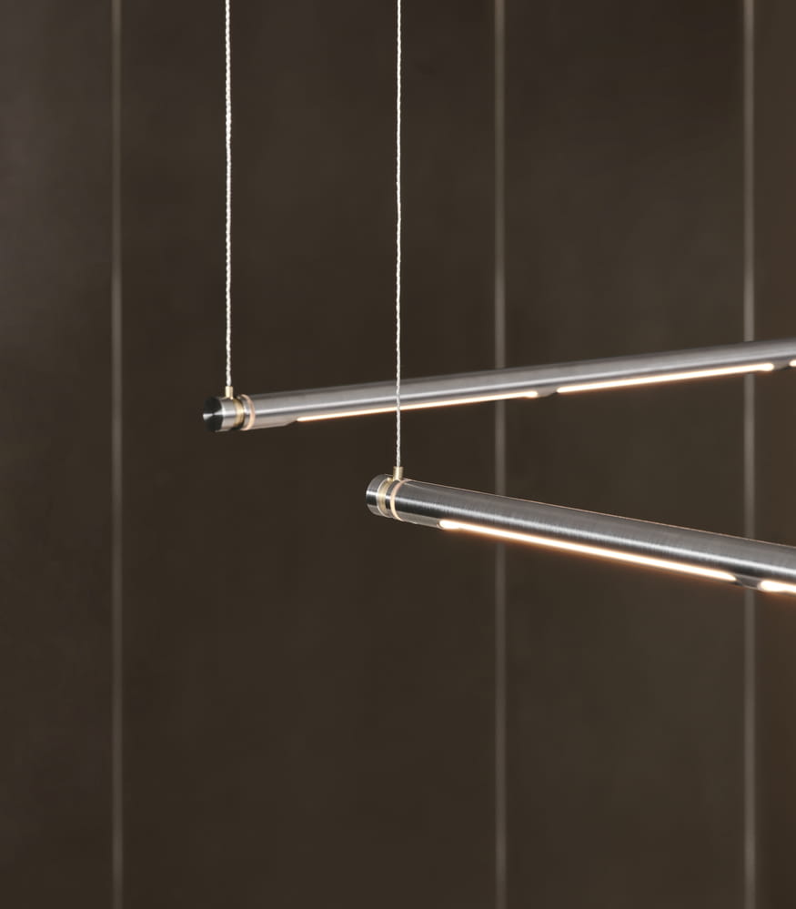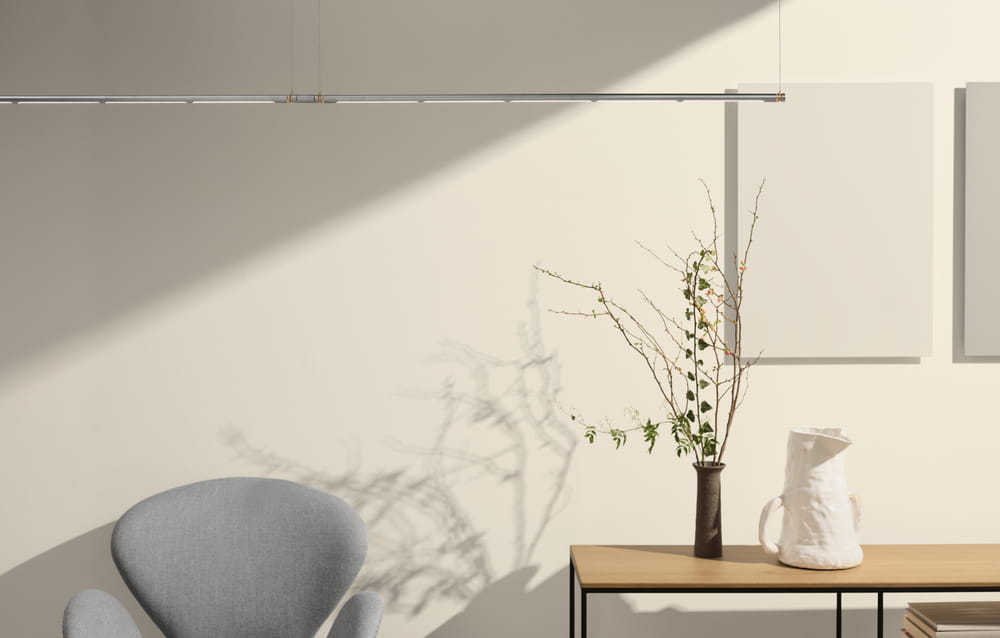 Linia świetlna Oneline autorstwa Kaspera Friisa Kjeldgaarda nawiązuje do czystych form ikonicznych projektów mebli Poula Kjærholma. Wszystko tylko nie zwyczajne - światło jest zamknięte w odbijającym światło metalu - oferowanym w trzech pięknych wykończeniach: stali nierdzewnej, szczotkowanym mosiądzu i stali z czarną powłoką PVD. Ściemniana technologia LED pozwala kontrolować światło.