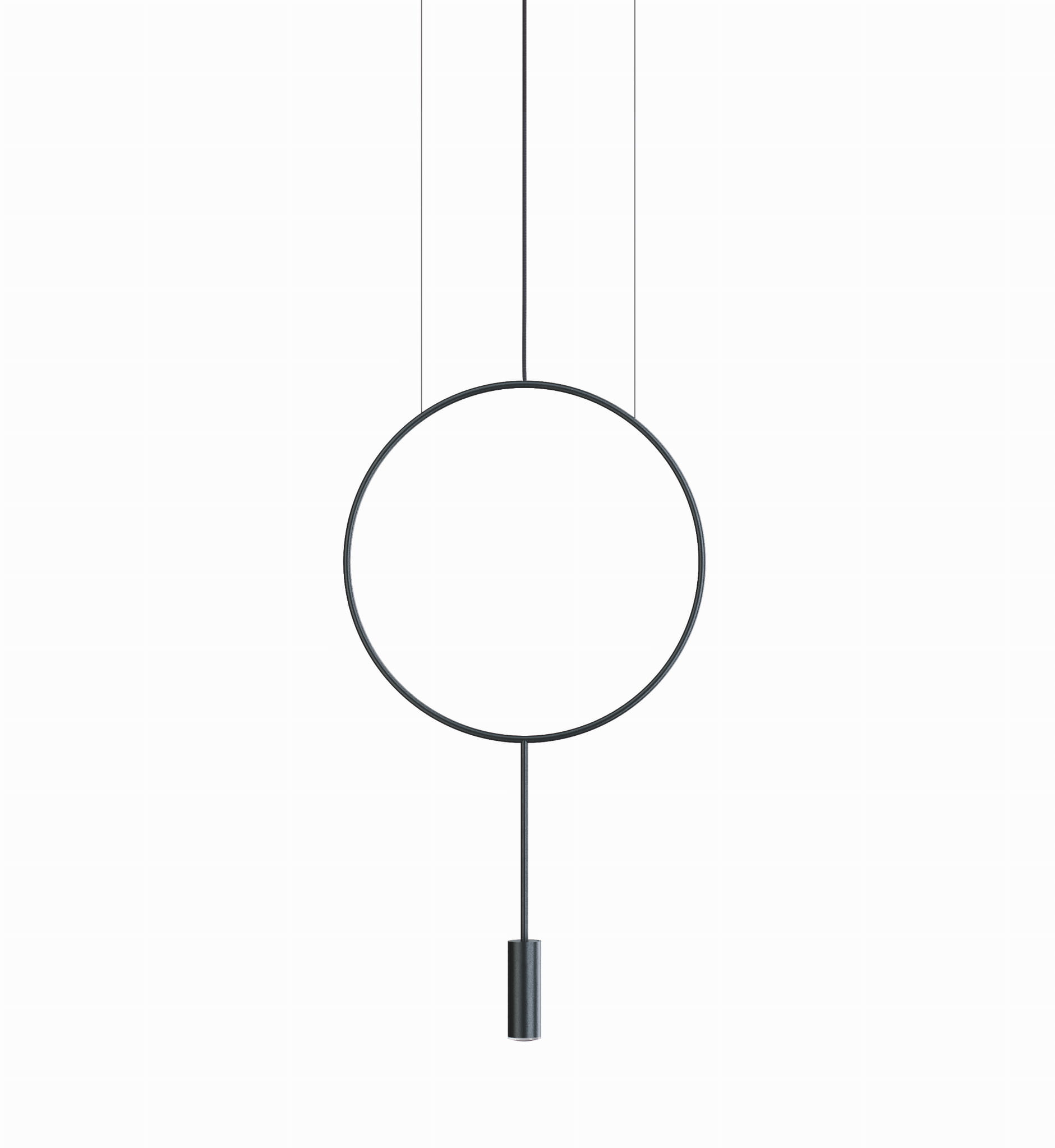Lampa wisząca o okrągłym korpusie i dwóch różnych średnicach. Kolekcja nawiązuje do serii Volta - równie minimalistycznej i nowoczesnej odsłony marki Estiluz.