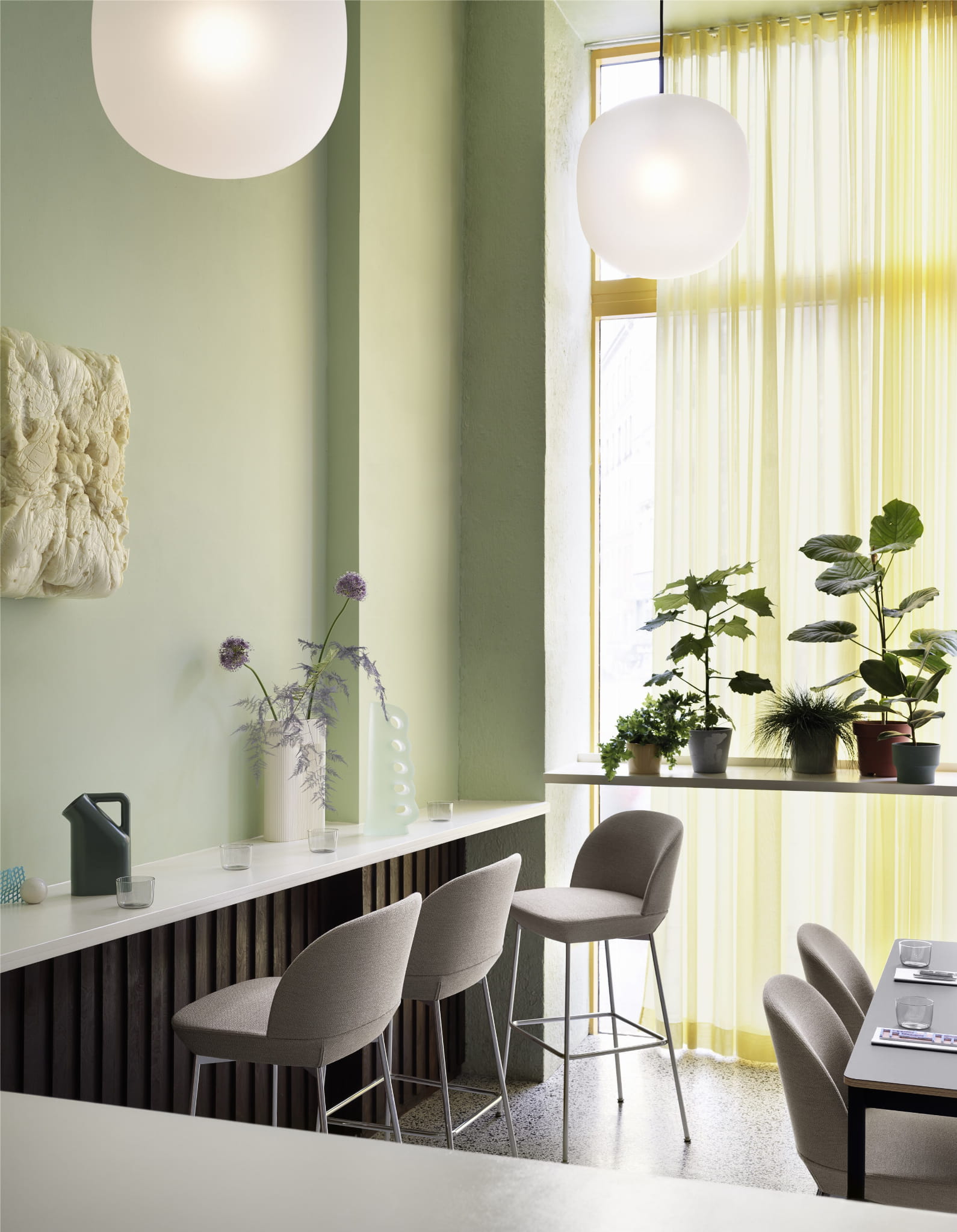 Lampa wisząca Rime nadaje szklanej lampie wiszącej elegancką perspektywę dzięki półprzezroczystemu szkłu, które zostało poddane piaskowaniu, aby nadać jej wyrafinowany wygląd. Projekt ma charakterystyczną formę, inspirowaną kształtem żołędzi, uzupełnioną malowaną proszkowo górną częścią, zawieszką i kablem w dopasowanym kolorze dla subtelnego akcentu. Projekt jest dostępny w czterech kolorach w kilku rozmiarach, co pozwala na użycie wzoru samodzielnie,w formacjach liniowych lub do nowoczesnego żyrandola.