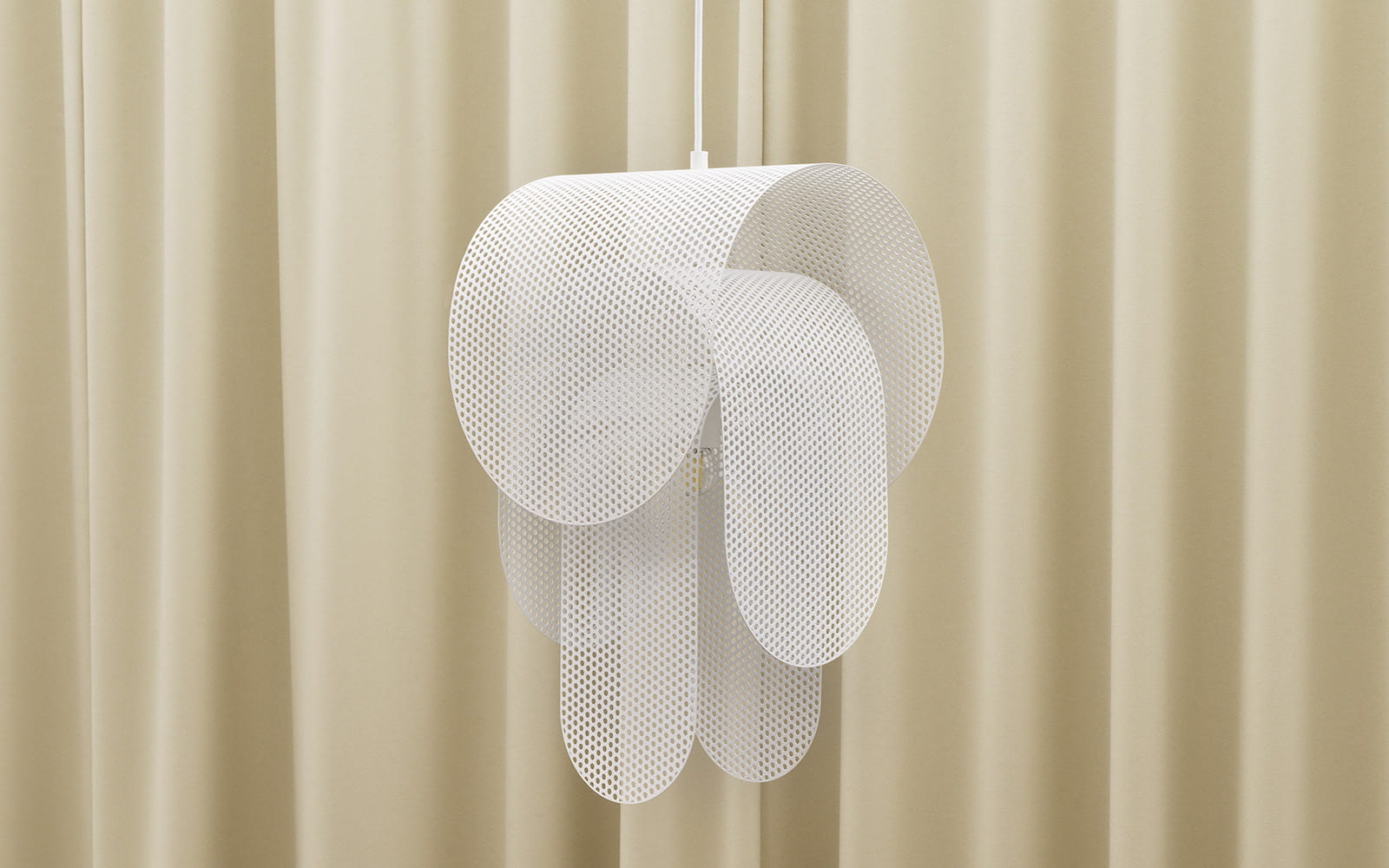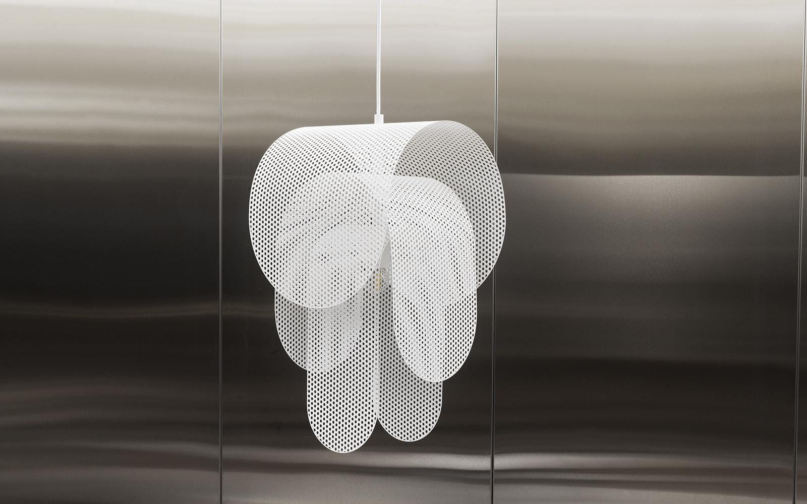 Lampa Superpose świeci miękkim światłem na zewnątrz i bezpośrednim w dół, a jej perforowany wzór rzuca żywe cienie na otoczenie. Pozwólmy lampie stać nad stołem, wykorzystajmy ją jako nastrojowe oświetlenie w rogu lub jako imponującą lampę sufitową. Niezależnie od kontekstu, Superpose nieustannie uwodzi widza nowymi wrażeniami, które nie przestają przyciągać, nawet gdy lampa jest wyłączona.