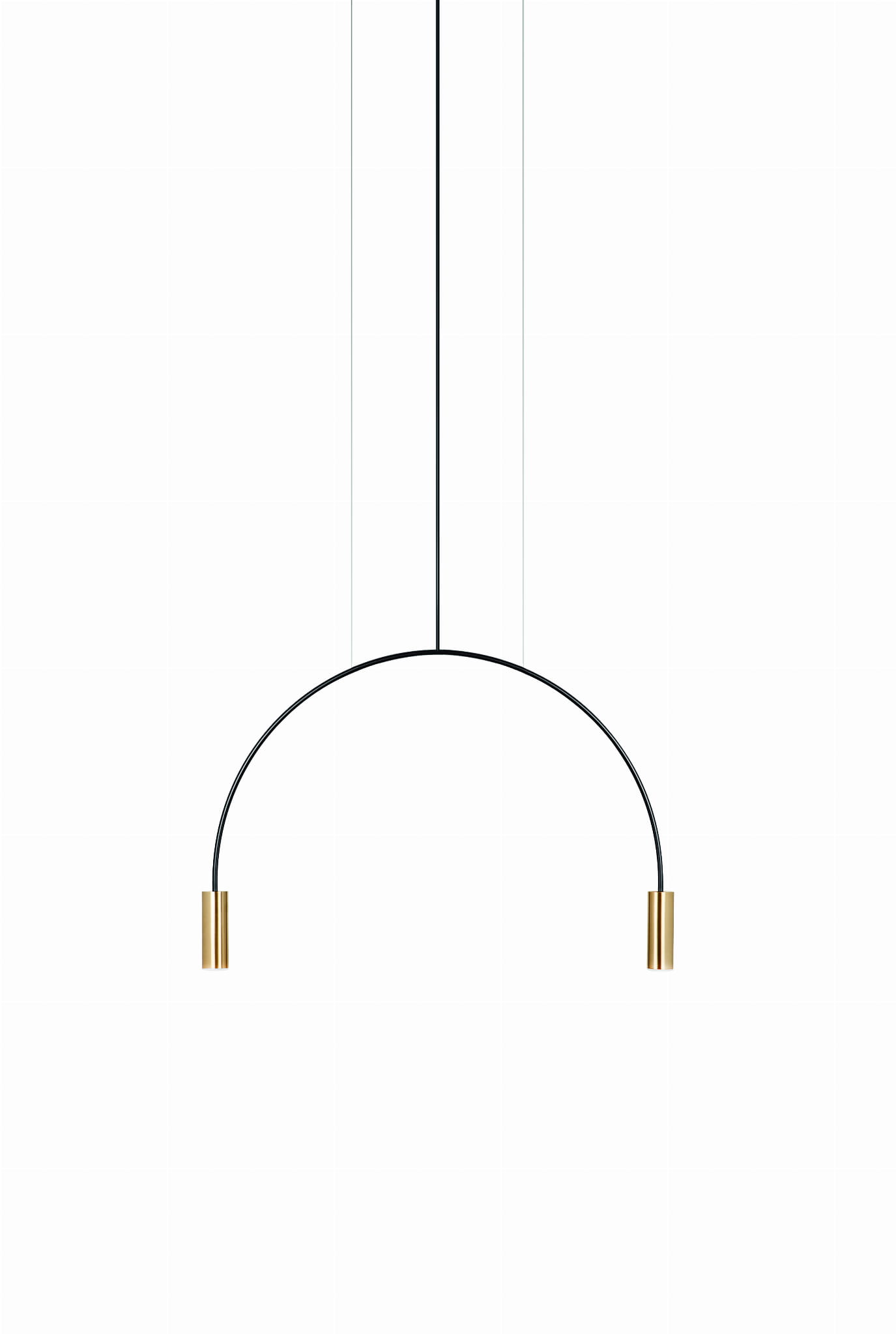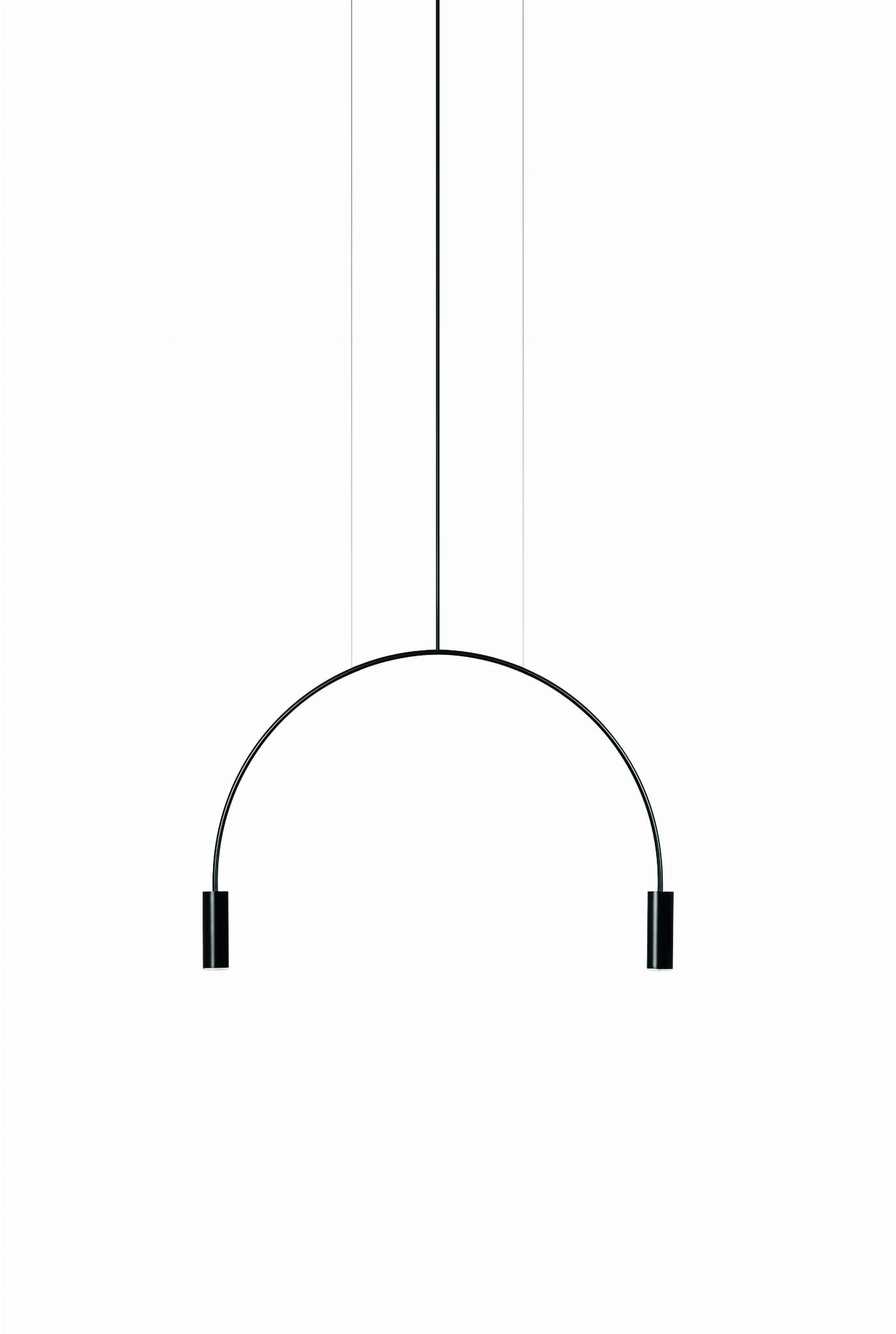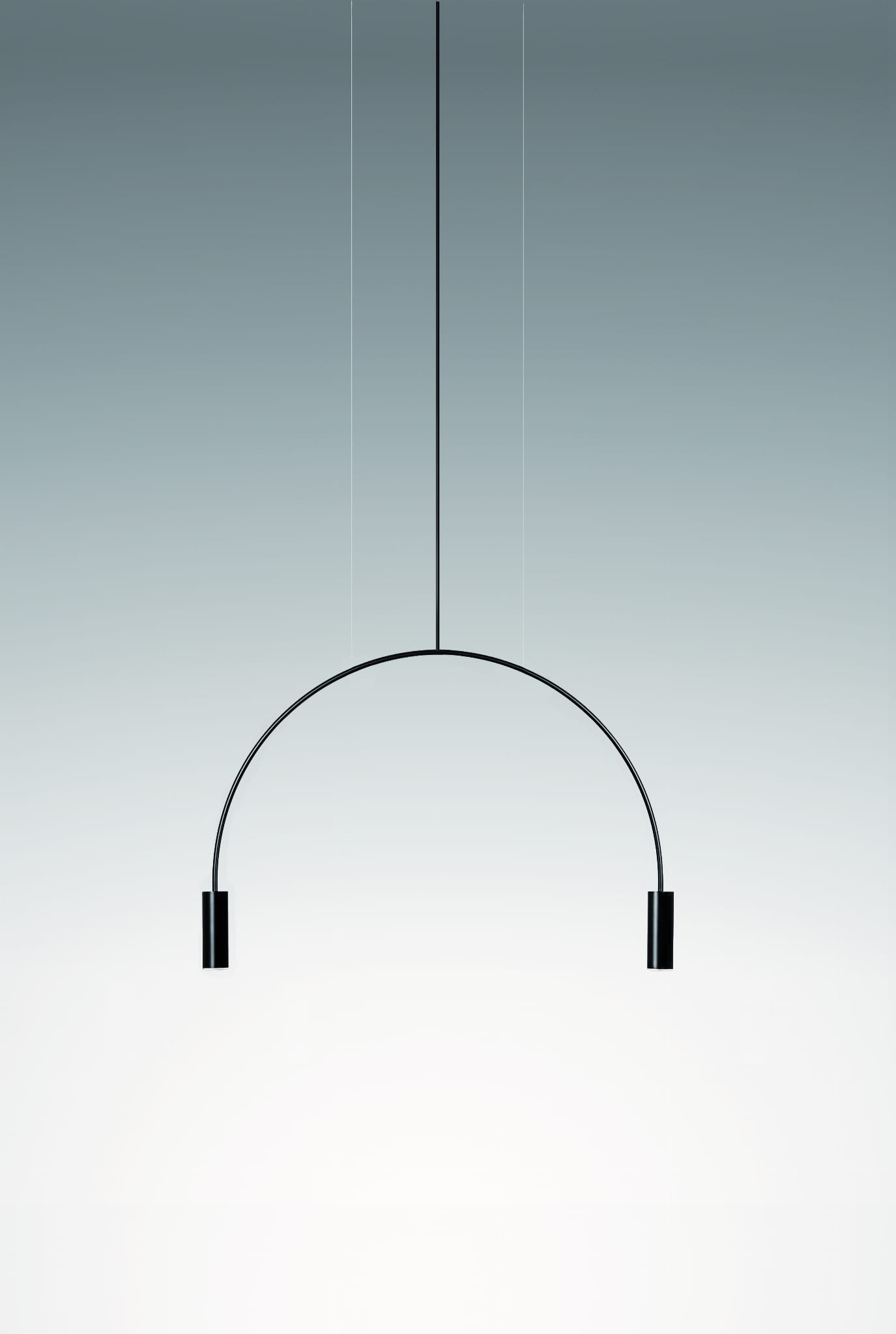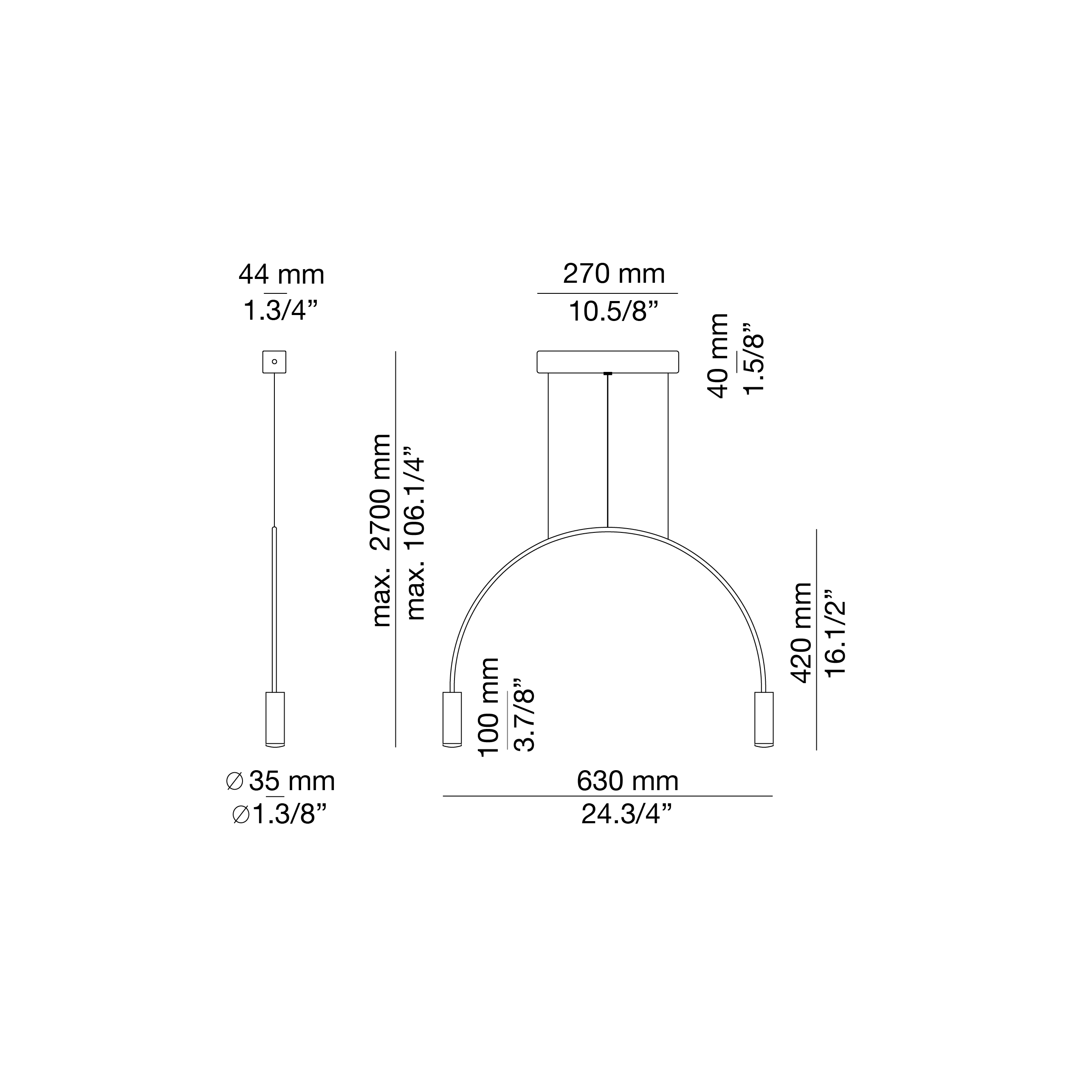 Lampa wisząca z metalowym korpusem ze zintegrowaną ściemnialną diodą LED, cylindrycznymi aluminiowymi głowicami i dyfuzorami z akrylowych (PMMA) soczewek.