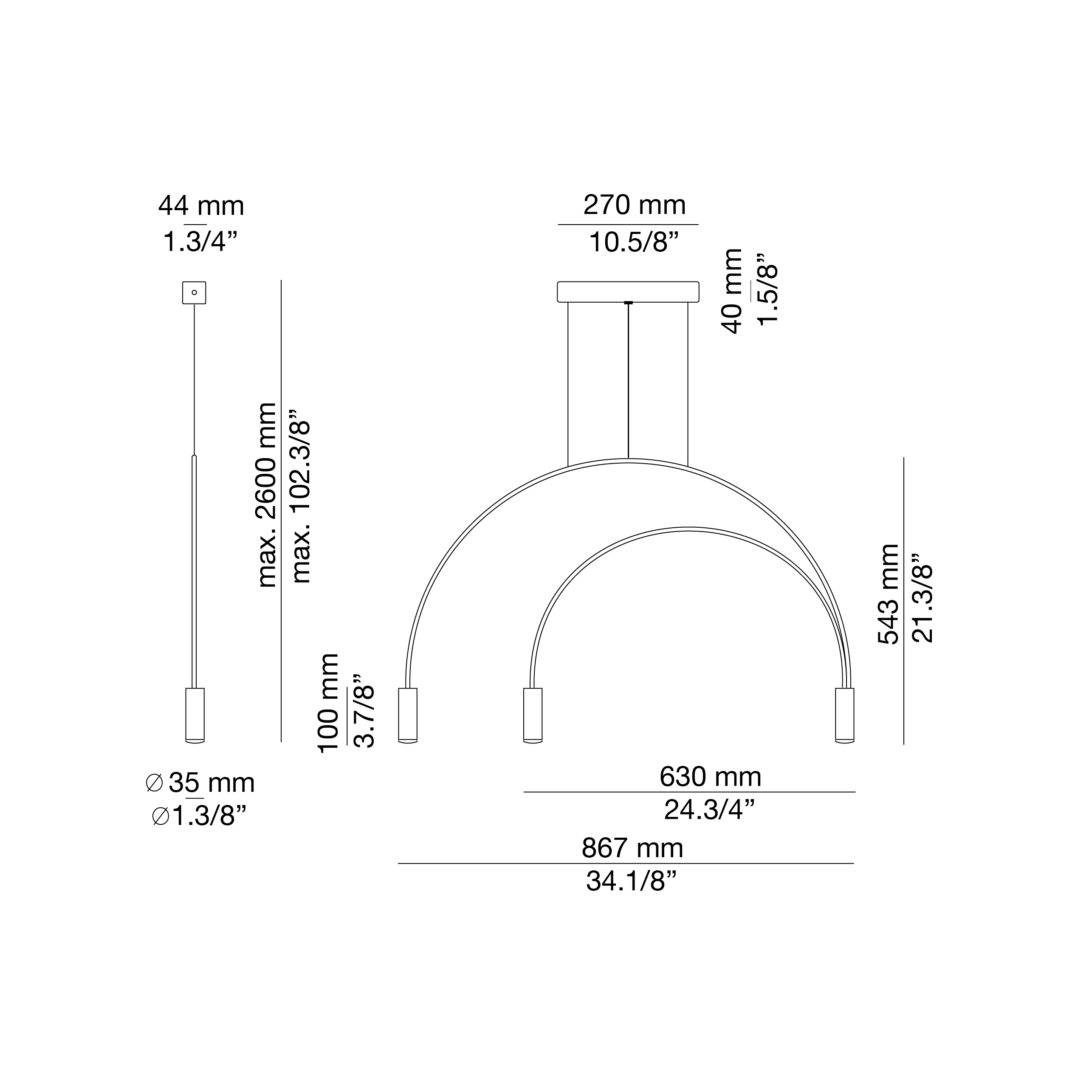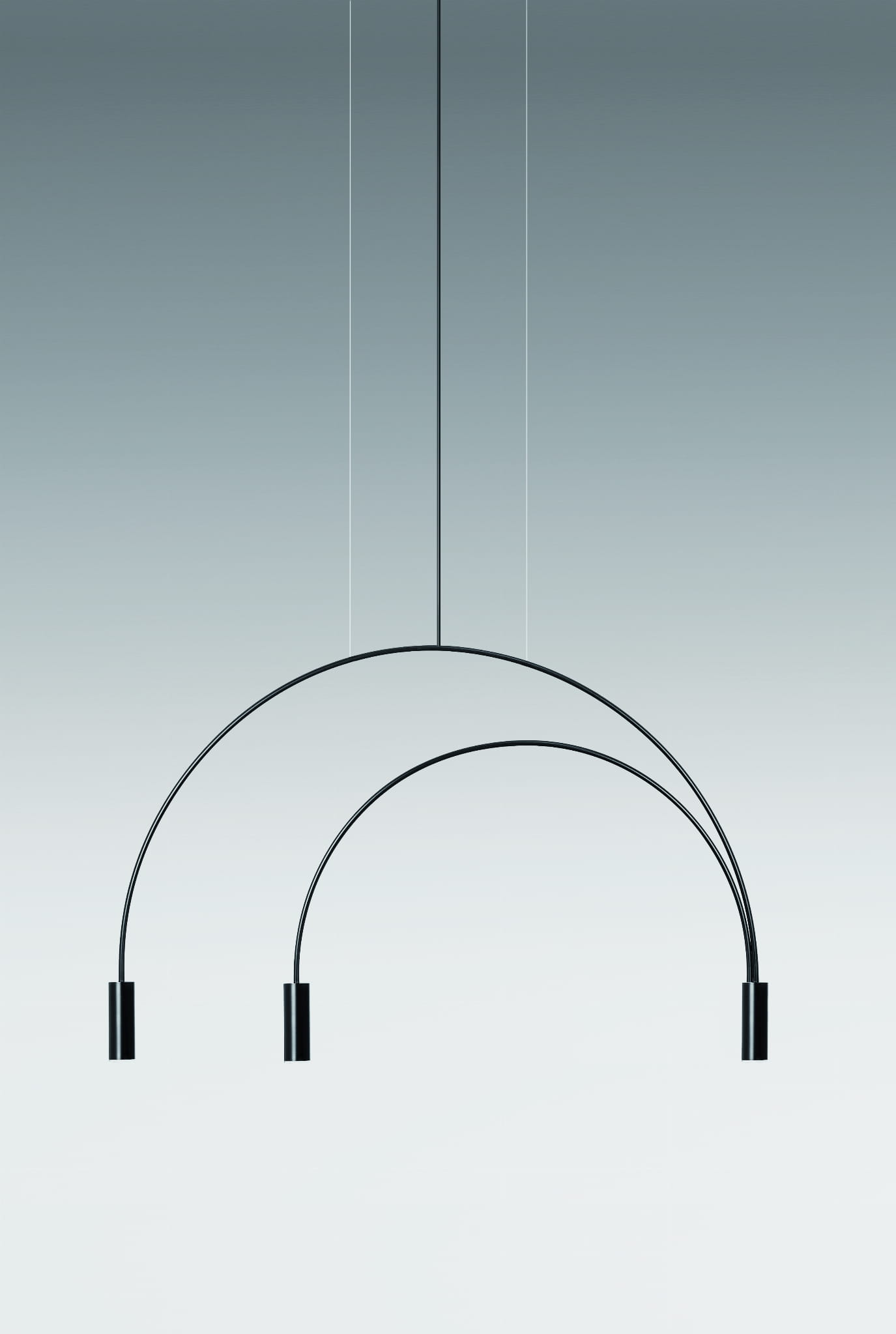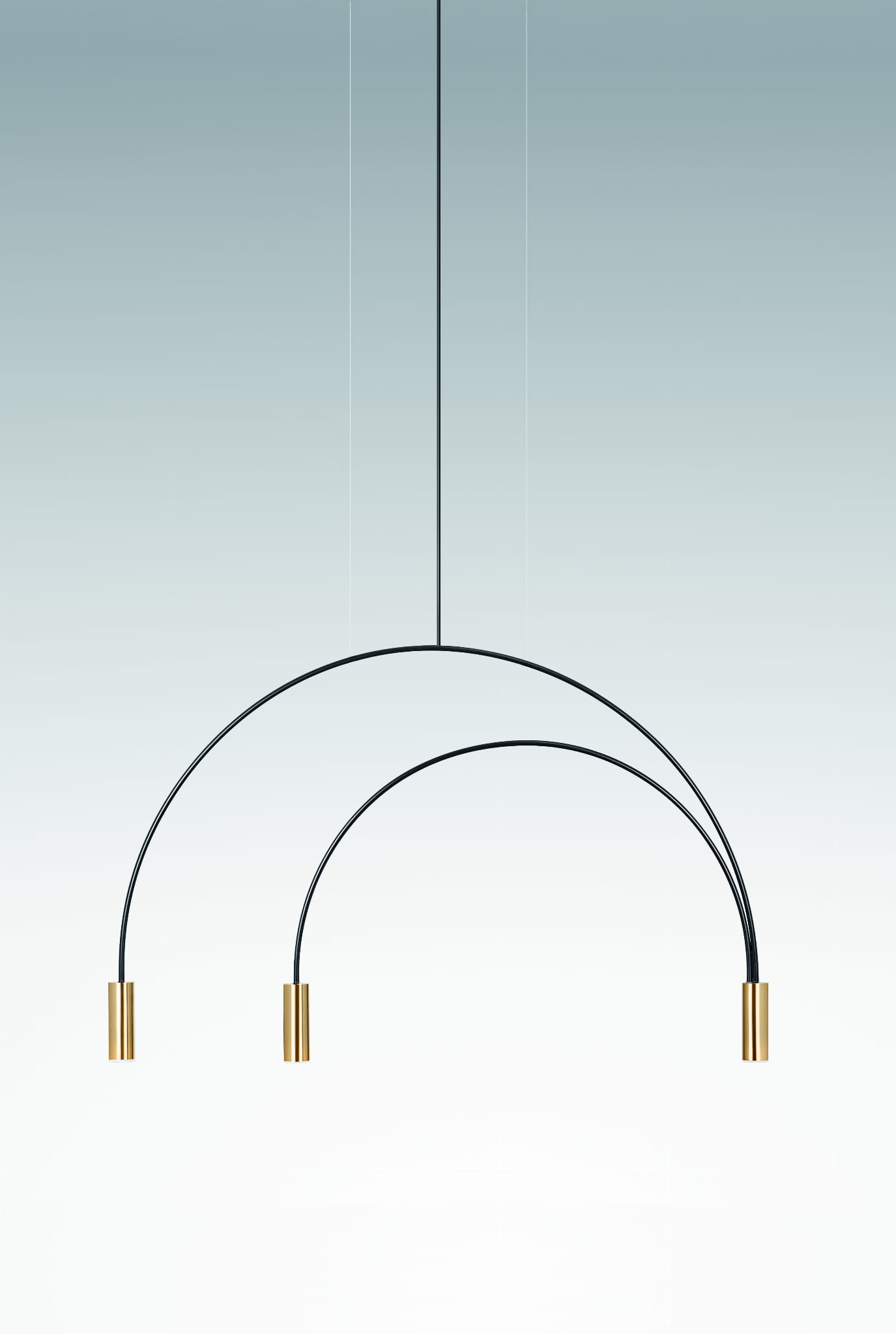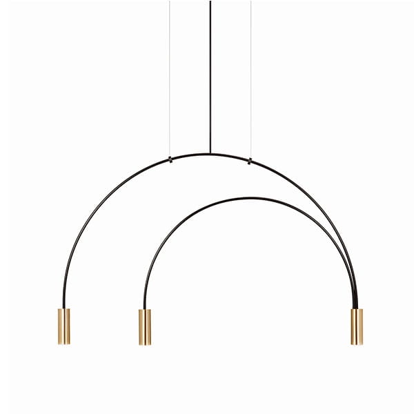 Lampa wisząca z metalowym korpusem ze zintegrowaną ściemnialną diodą LED, cylindrycznymi aluminiowymi głowicami i dyfuzorami z akrylowych (PMMA) soczewek.