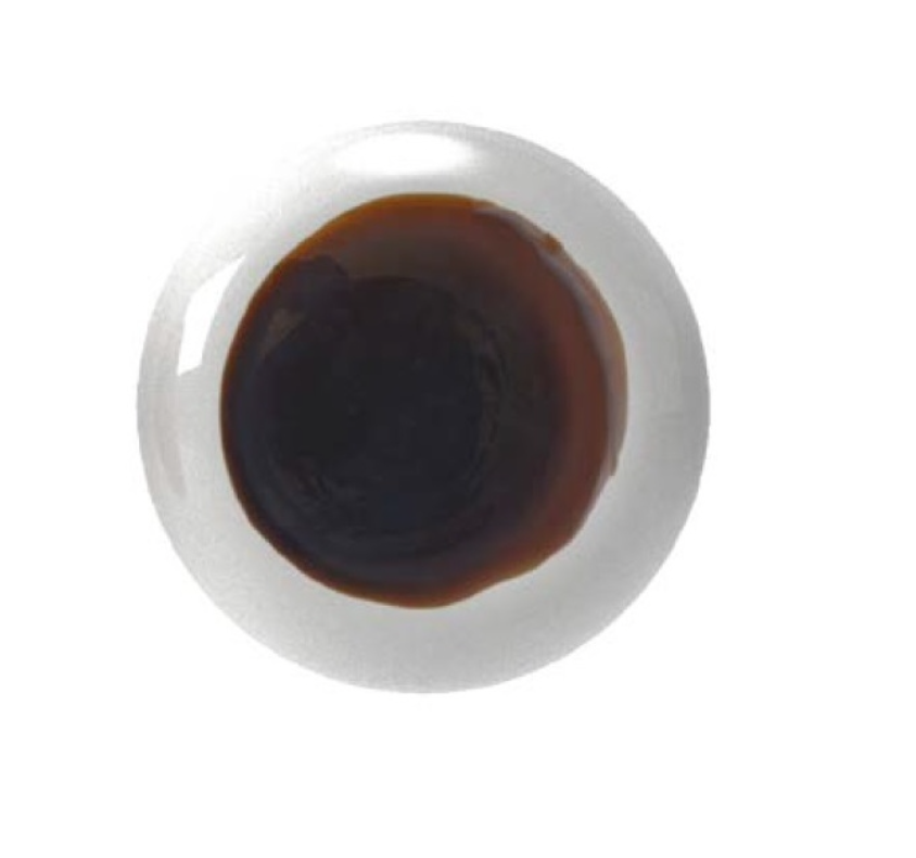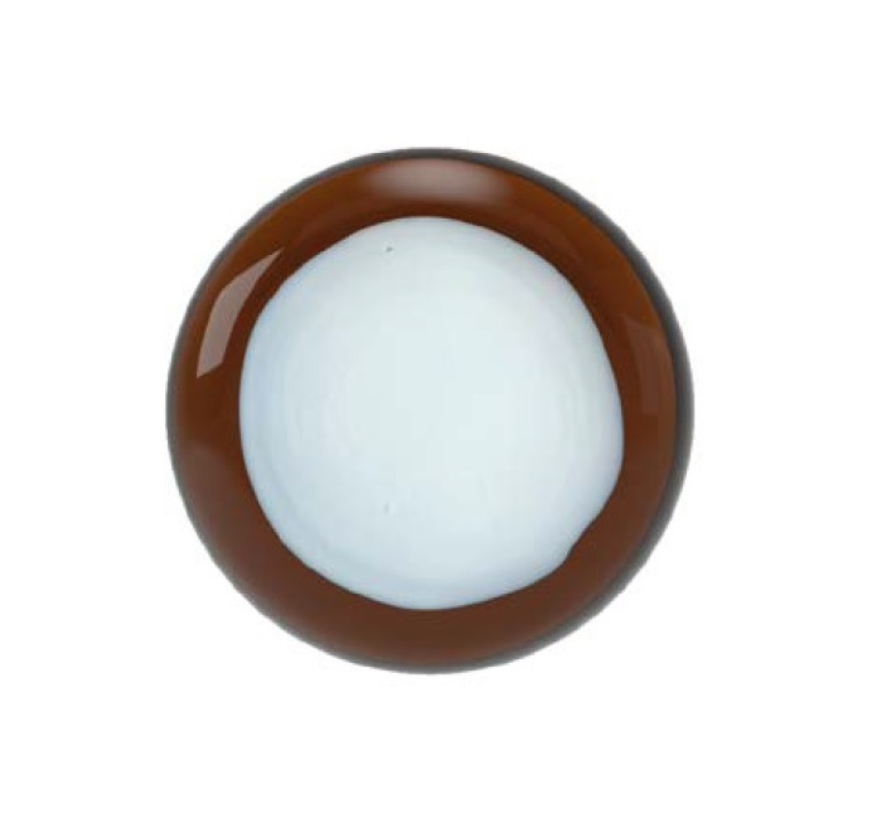 Przezroczyste brązowe szkło z białą plamą.