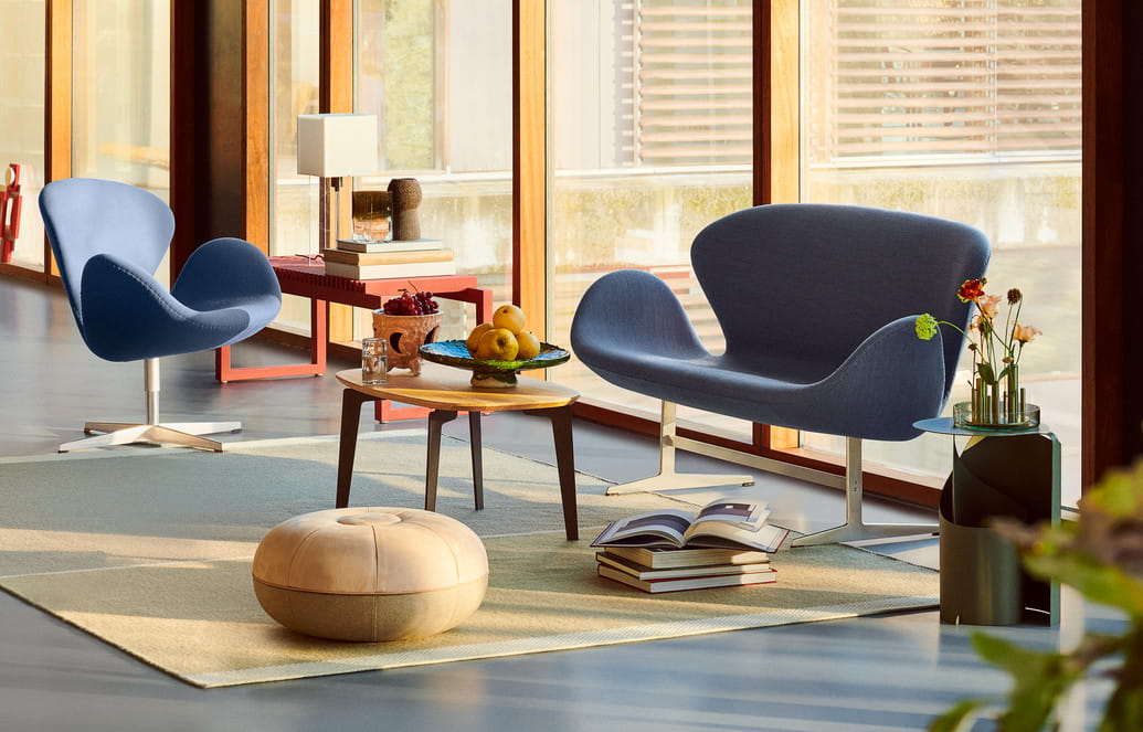 Swan™ Sofa została zaprojektowana przez Arne Jacobsena w 1958 roku dla SAS Royal Hotel w Kopenhadze i ponownie wprowadzona do kolekcji Fritza Hansena w 2000 roku. Projekt nie zawiera prostych linii, dzięki czemu jest organiczny i miękki dla oka pomimo swojej prostoty i silnego architektonicznego uroku.
